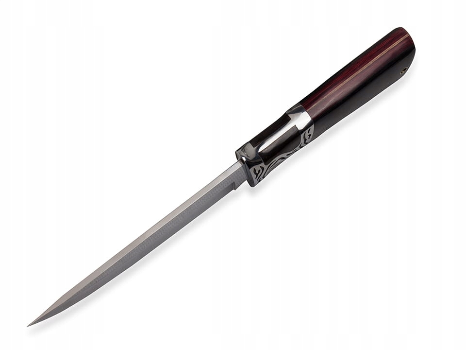 - Rękojeść wykonana z drewnianych okładzin oraz stali.