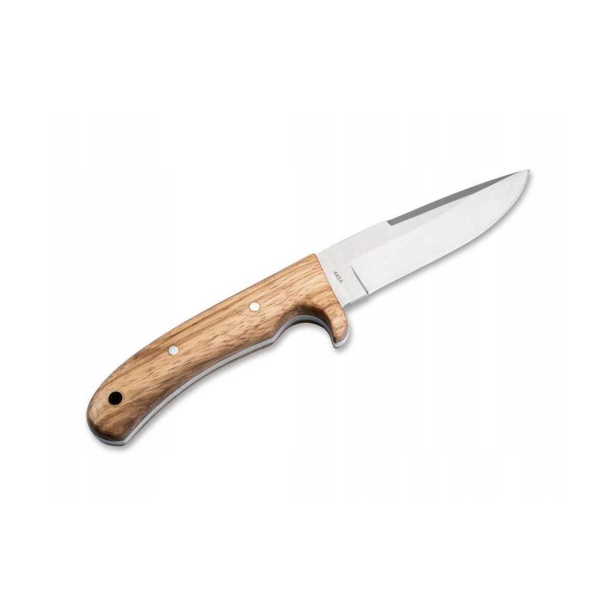 Nóż stały Magnum Elk Hunter Zebrawood 02GL687 - to nóż outdoorowy o konstrukcji full tang. Głownia, o profilu Drop-Point, została wykonana ze stali nierdzewnej 440A, zahartowana do 57-59 HRC i wykończona metodą satynowania.