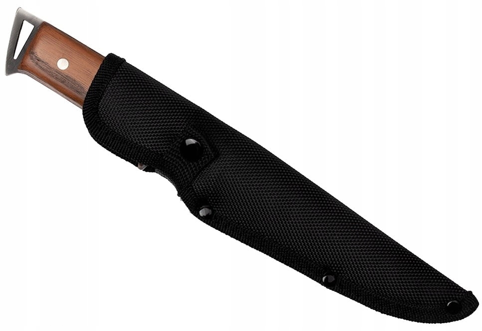 - Nóż Kandar został wyposażony w czarny pokrowiec z cordury, który można przymocować do paska spodni.