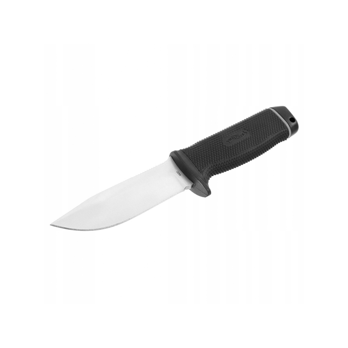 Nóż stały Walther WB 110 - to wszechstronny nóż przeznaczony do pracy w terenie. Klinga o długości 11 cm i profilu spear point wykonana została ze stali nierdzewnej 440C. Teksturowany chwyt inspirowany pistoletem sportowym Walther Q5 zapewnia pewny chwyt i minimalizuje ryzyko wyślizgnięcia. Wyprofilowany jelec skutecznie zabezpiecza dłoń przed zsunięciem na głownię. Otwór na końcu chwytu umożliwia zamontowanie linki zabezpieczającej.