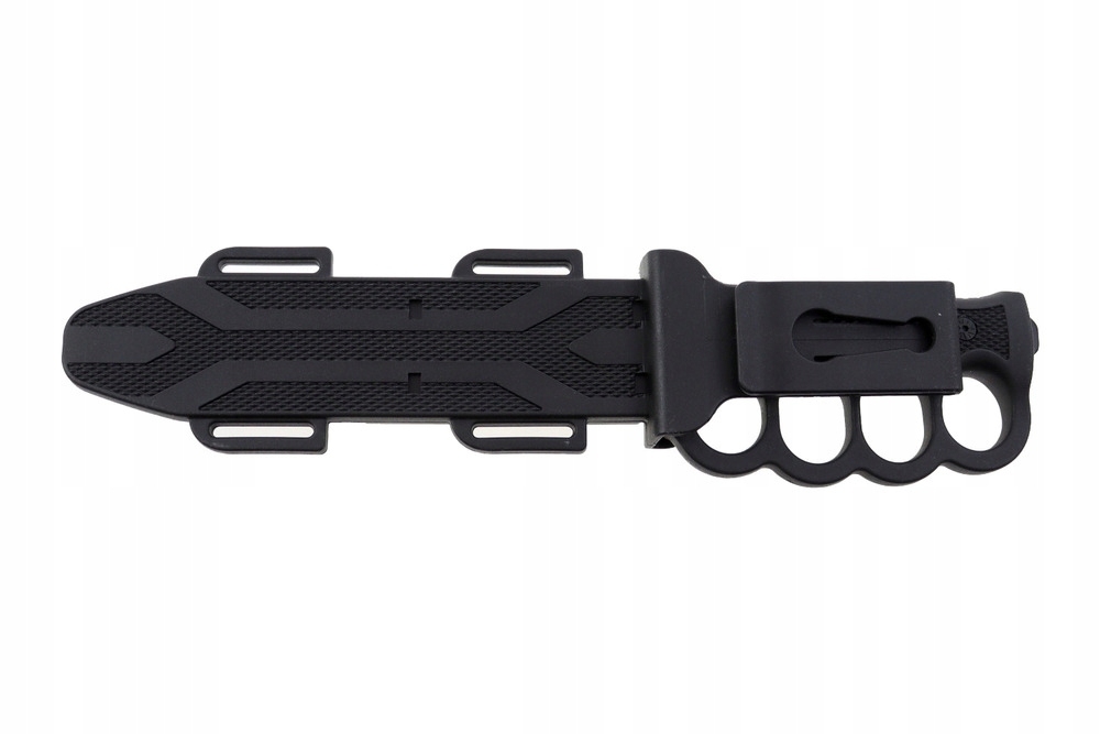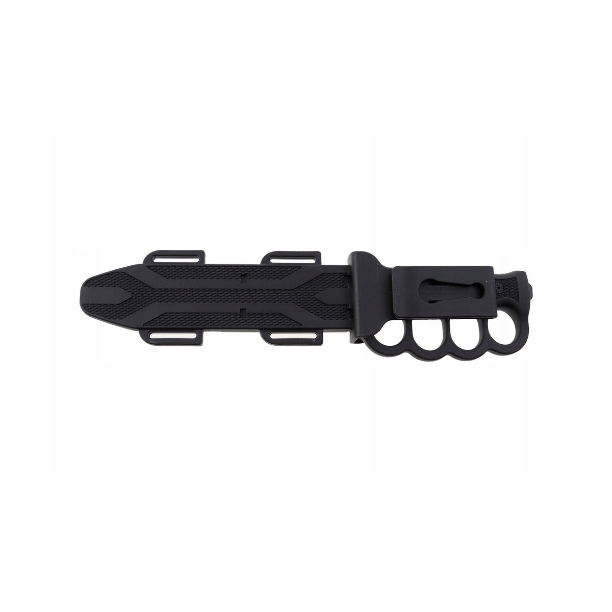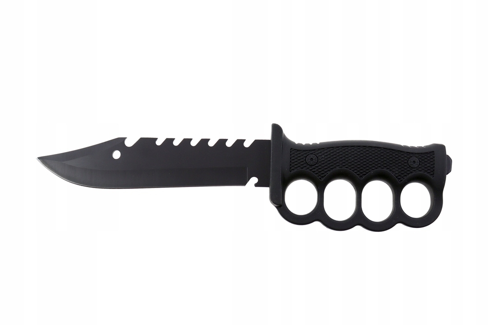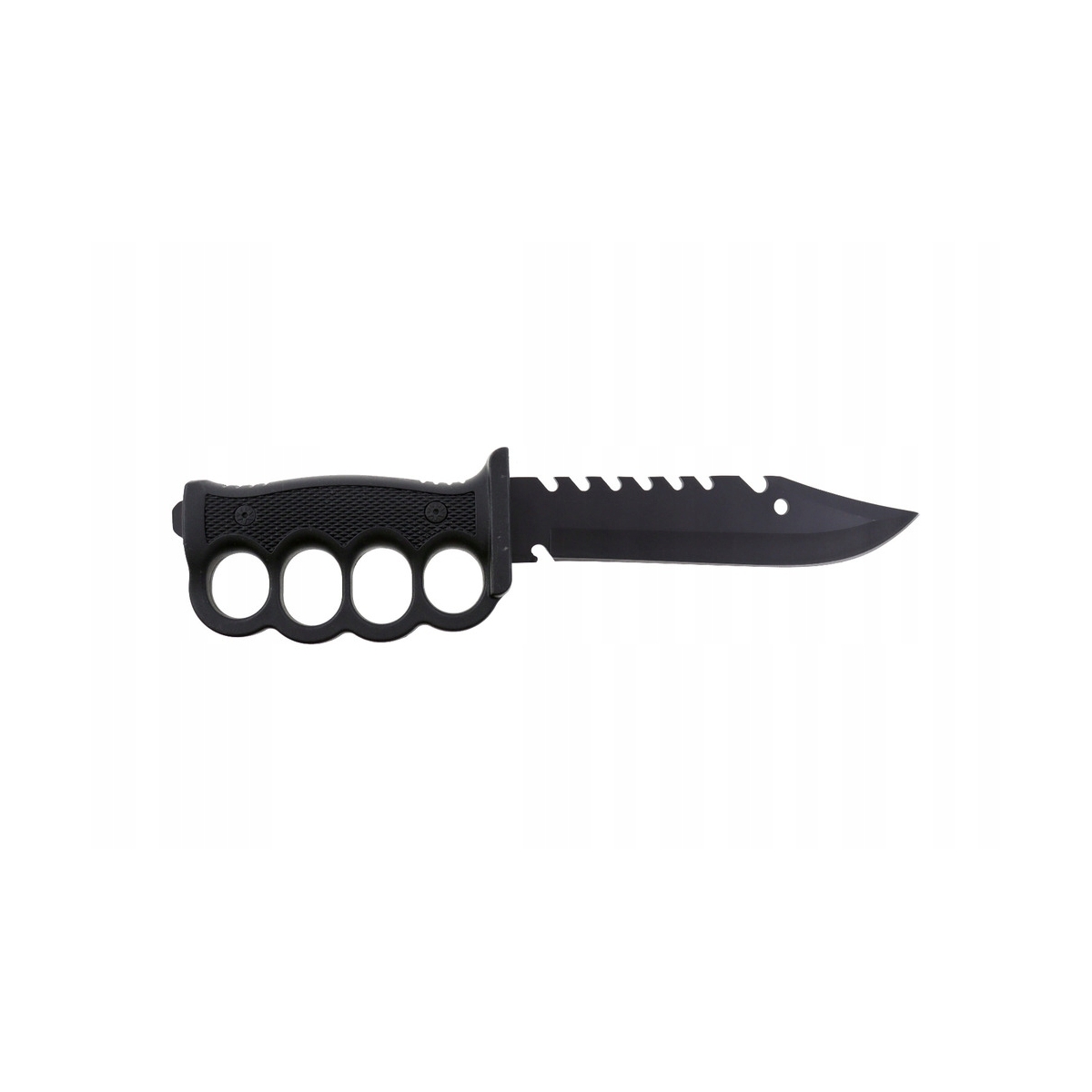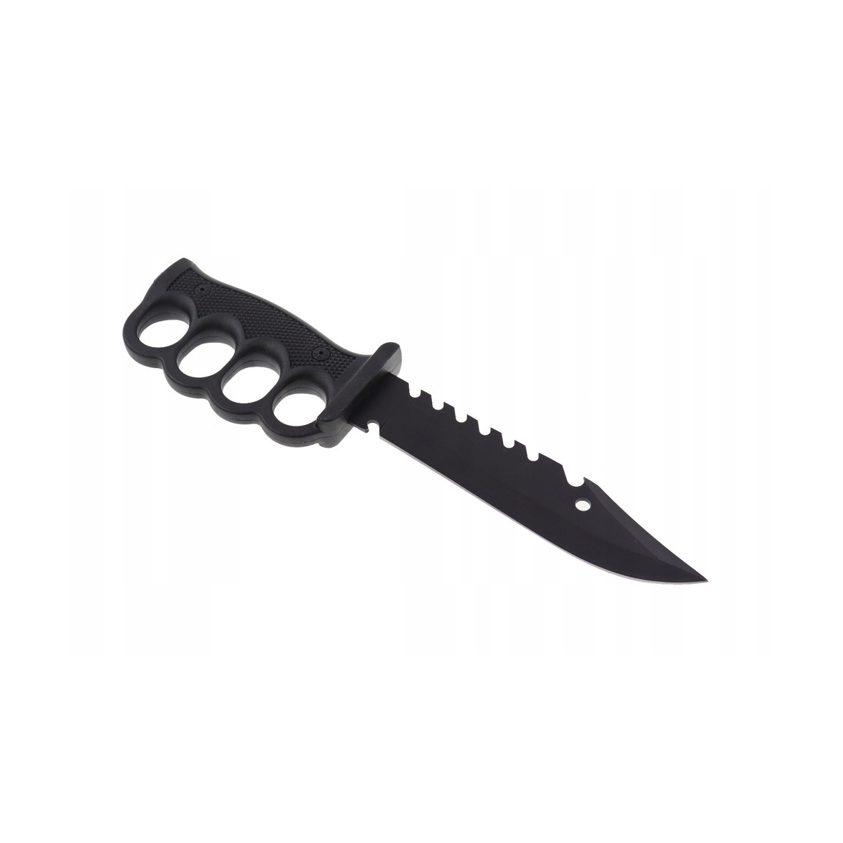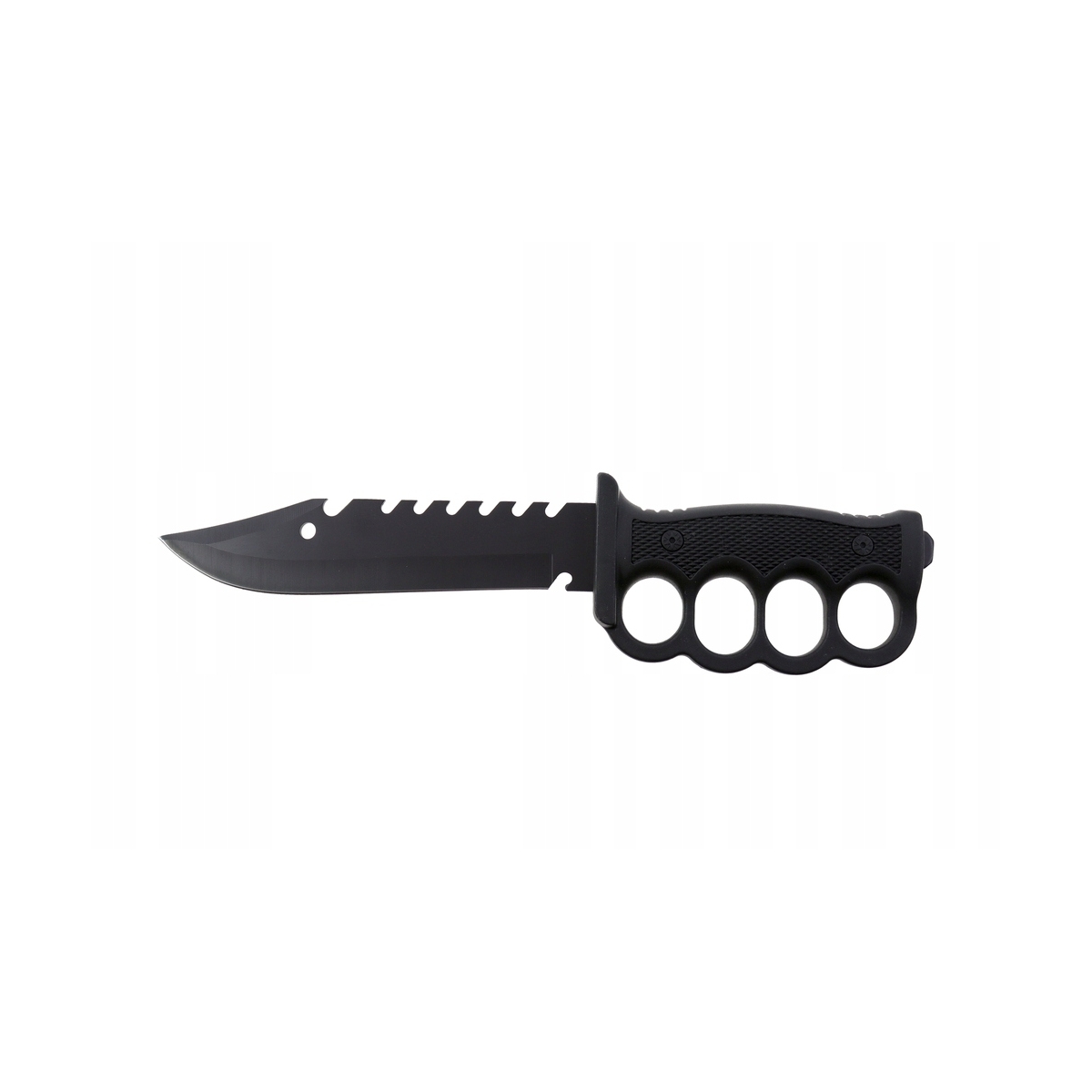 Ten niezwykle praktyczny i uniwersalny nóż to niezbędnik dla każdego miłośnika przygód i prac z drewnem. Ergonomiczna, karbowana rękojeść zapewnia wygodną i pewną przyczepność, a ochrona palców kastetem pozwala na bezpieczną pracę. W tylnej części noża znajduje się metalowy zbijak, który pozwala na szybkie i skuteczne rozbijanie szyb.
