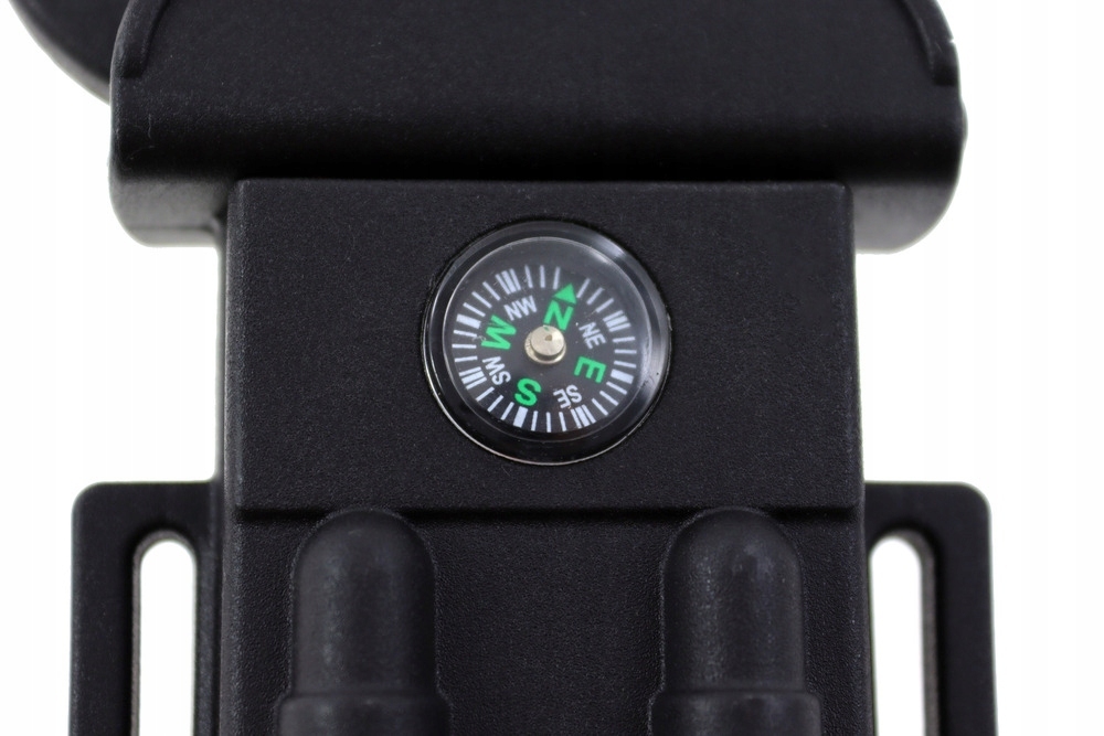 Nóż surwiwalowy z kompasem i krzesiwem - to niezwykle trwały i elegancki nóż, wykonany z wysokiej jakości stali nierdzewnej i dodatkowo pokryty czarną powłoką antykorozyjną, to idealne narzędzie do precyzyjnych prac i ostrego cięcia. Głownia o profilu clip point z gładkim ostrzem.