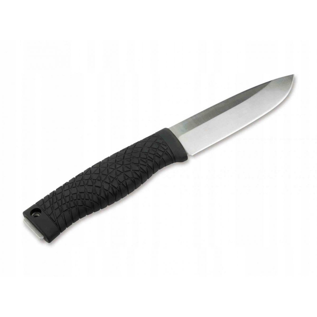 Rękojeść została zrobiona z czarnego tworzywa TPE (Thermoplastic Elastomer) - wytrzymałego i elastycznego materiału o antypoślizgowej fakturze. Dzięki temu nóż pewnie leży w dłoni w każdych warunkach pogodowych i roboczych.