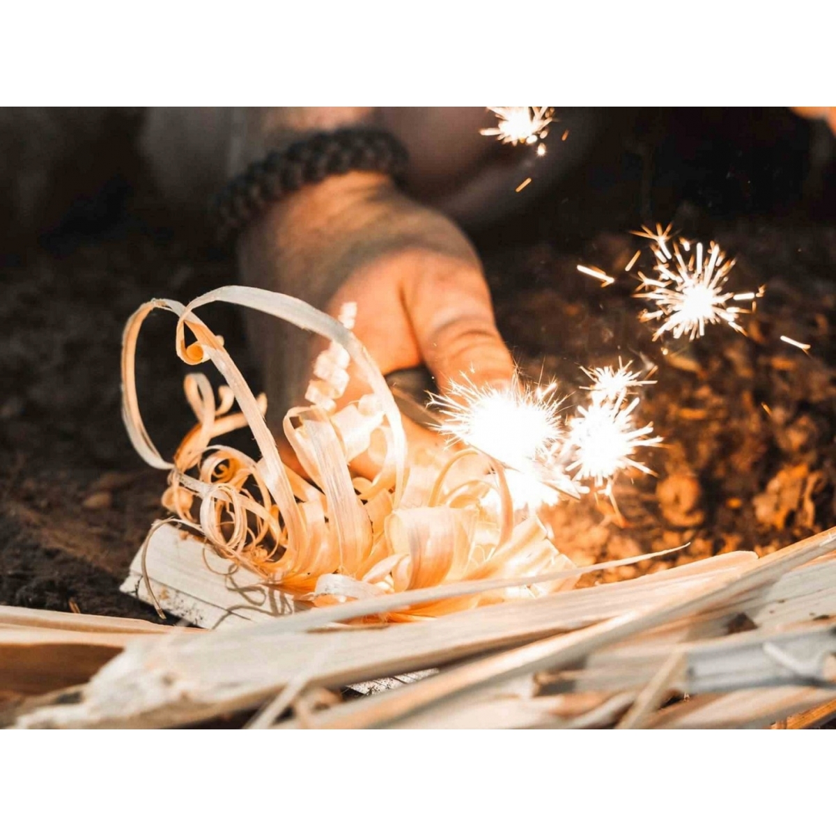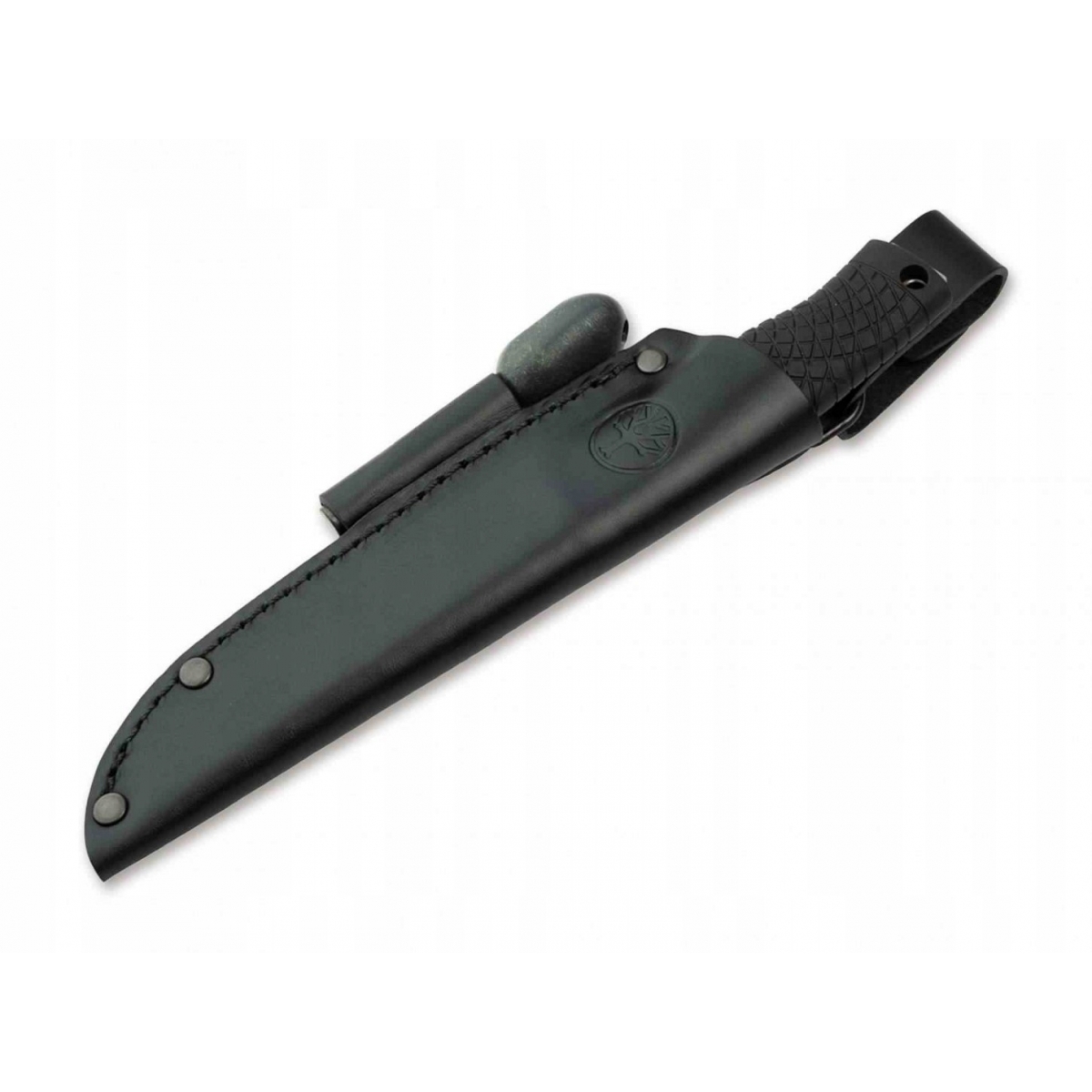 W zestawie znajduje się czarna skórzana pochwa oraz krzesiwo Light my Fire.