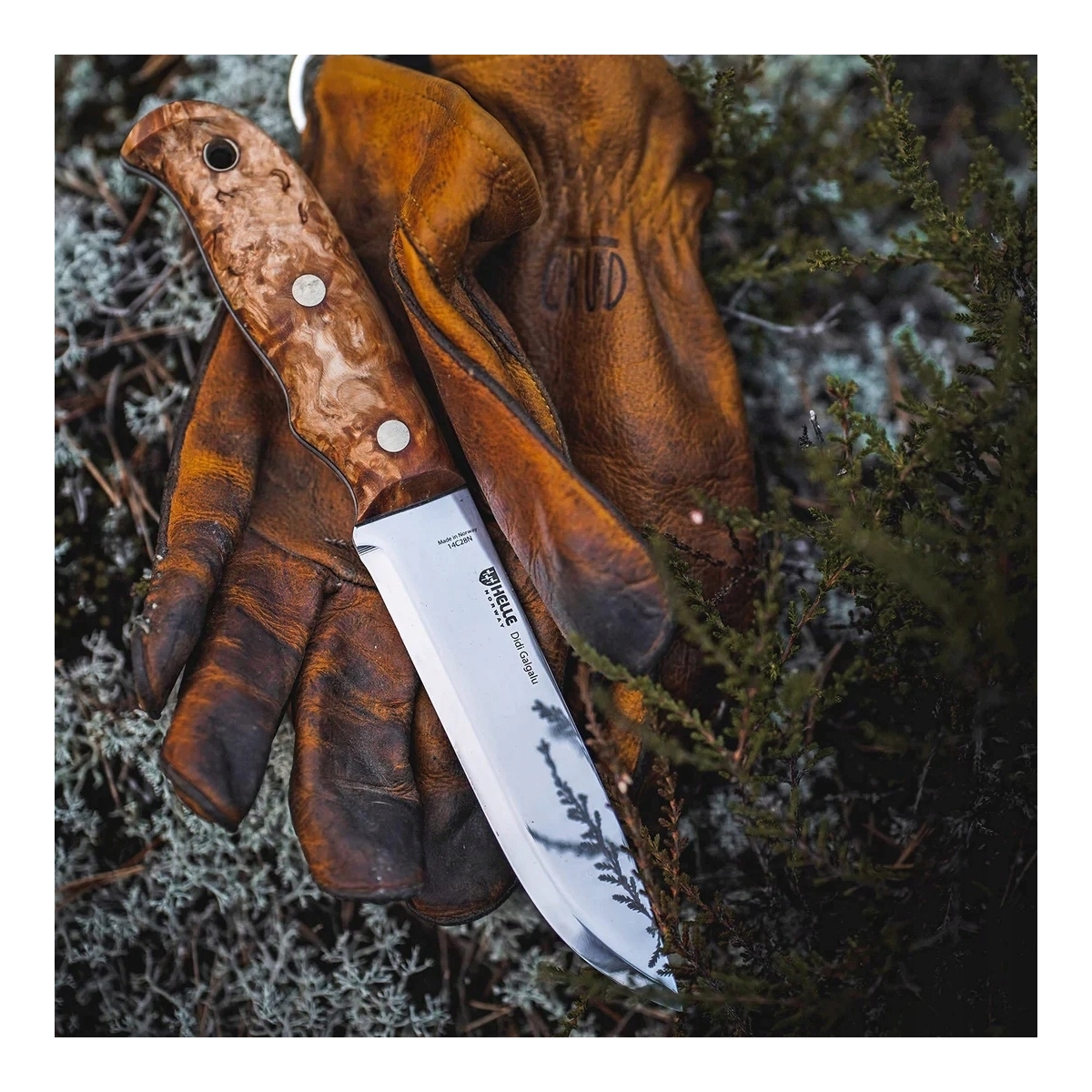 Nóż myśliwski HELLE DIDI GALGALU - to odświeżona i najnowsza wersja najlepiej sprzedającego się noża DIDI GAGALU firmy HELLE. Zaprojektowany tak, aby ostrze było wystarczająco cienkie, aby dobrze spisywać się jako nóż podczas cięcia lub rzeźbienia, a jednocześnie wystarczająco mocne, aby wykonywać cięższe zadania. Oszlifowany szlifem skandynawskim oraz naostrzony do ostrości brzytwy. Zaakceptowany na arenie międzynarodowej przez społeczność bushcraftową i outdoorową.