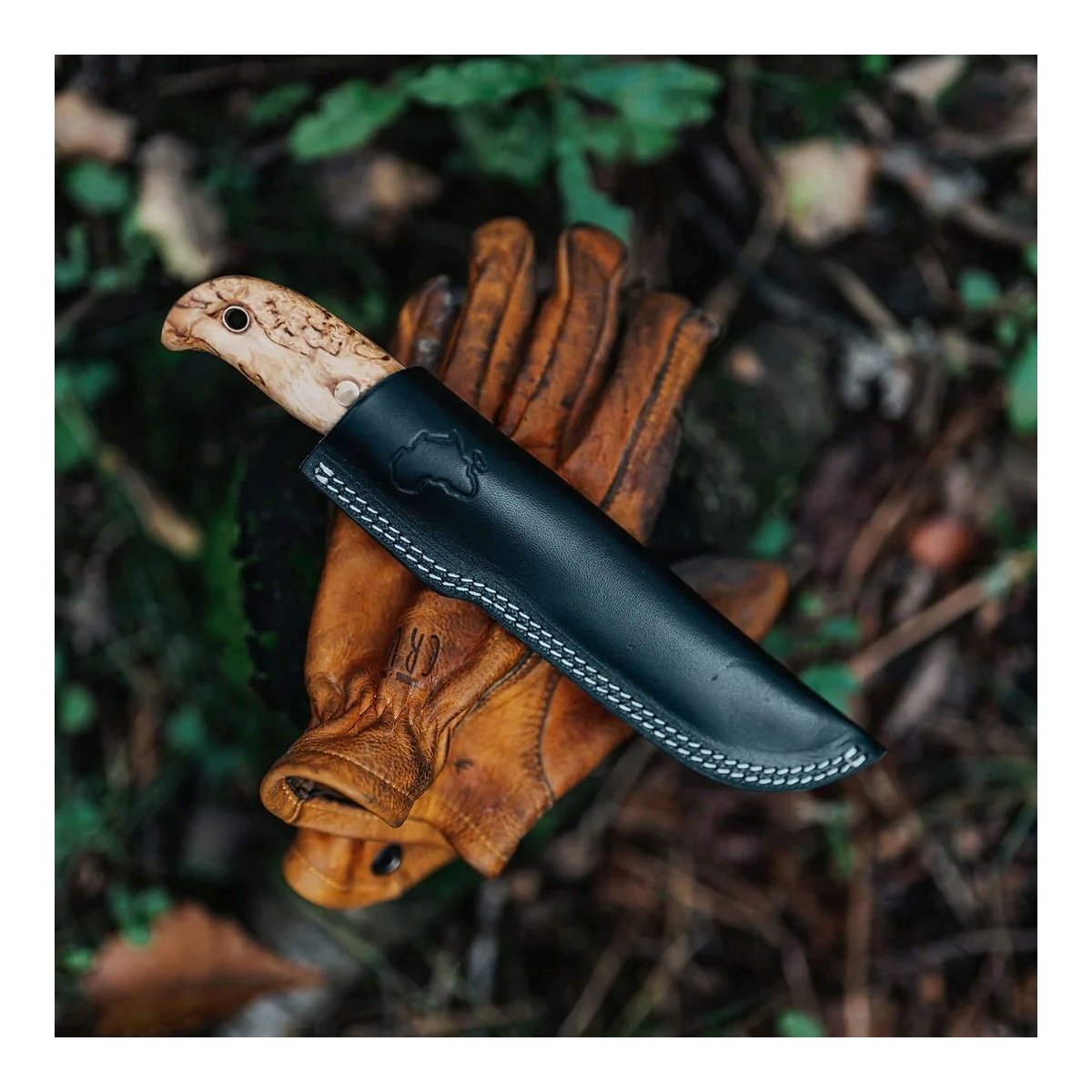 Helle Didi Galgalu wyposażony został w otwór na smycz na końcu rękojeści, który zwiększa komfort noszenia noża. W zestawie pochwa z wysokiej jakości skóry o nowym wyglądzie zapewniającym bezpieczne noszenie.