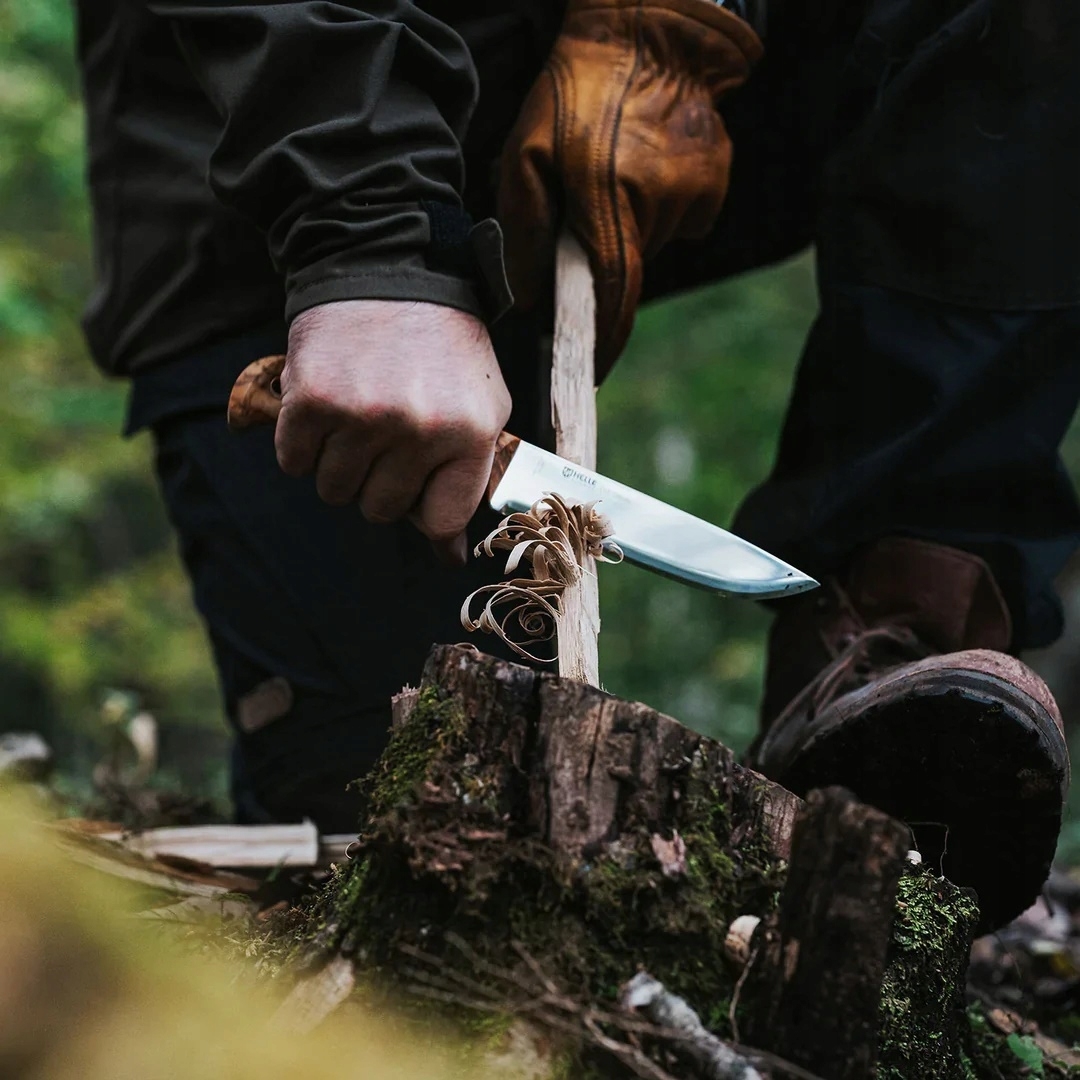 - Wykonany ze stali 14C28N z ostrym grzbietem.