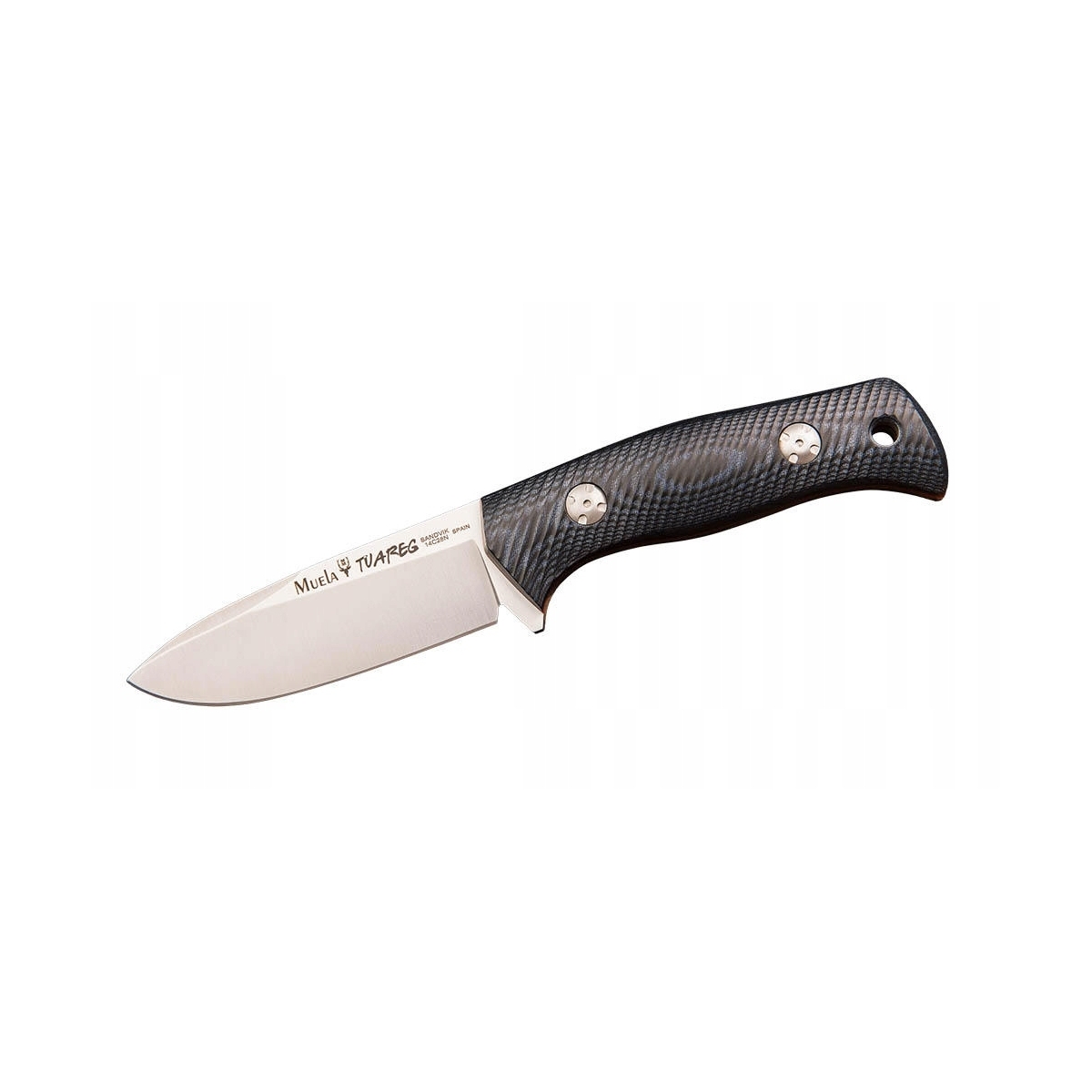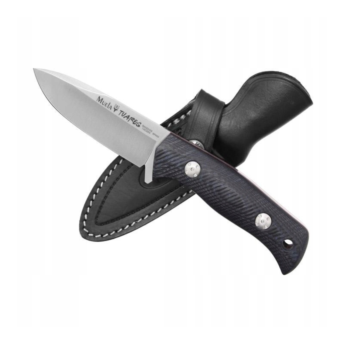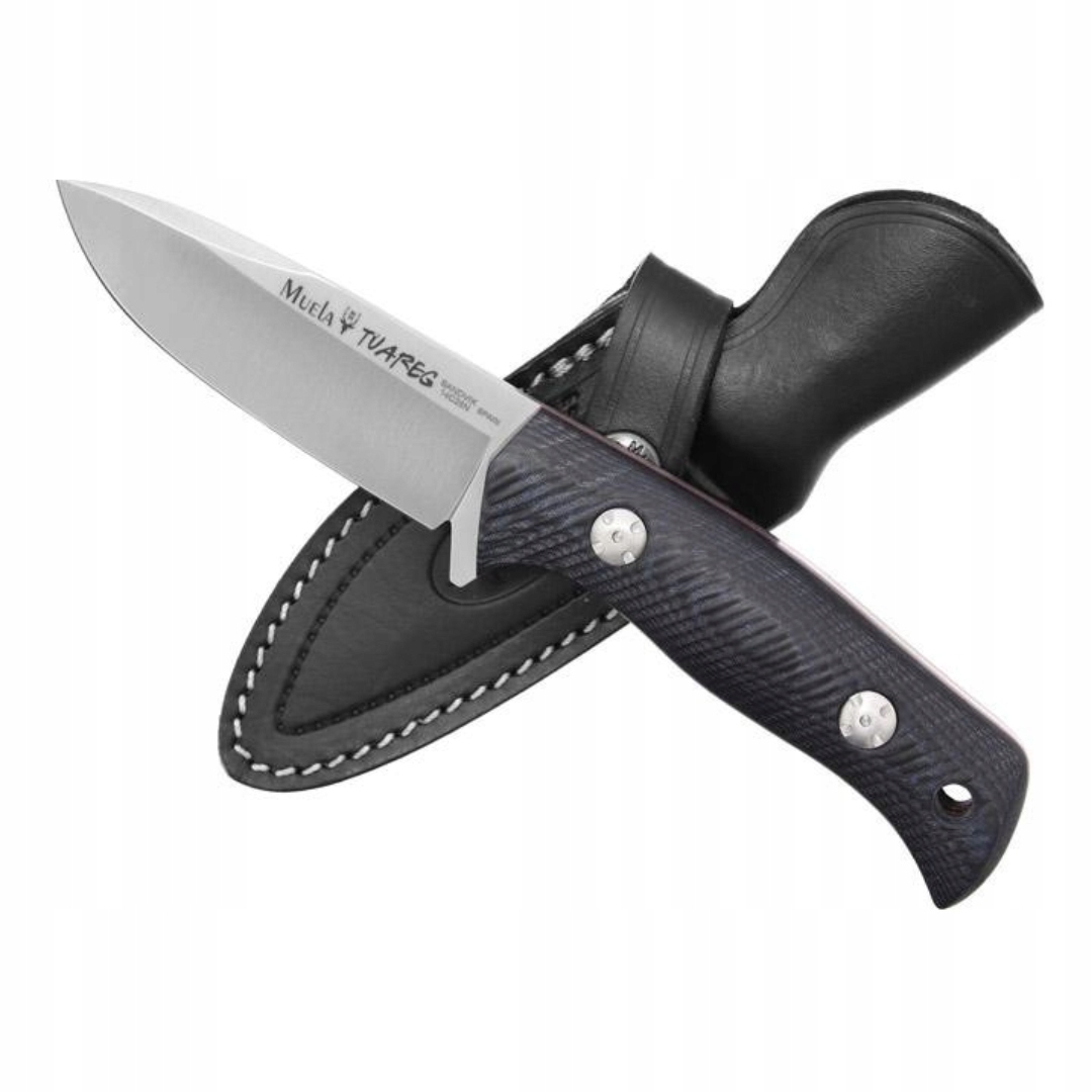MUELA TUAREG-10M - to wytrzymały nóż skierowany do miłośników bushcraftu. Wyposażony w doskonale wyważoną konstrukcję full tang. Stal Sandvik poddano obróbce kriogenicznej CRYO-T, zwanej również wymrażaniem stali. Dzięki temu uzyskujemy poprawę twardości i wytrzymałości klingi. Rękojeść noża została wykonana z ozdobnej czarno-niebieskiej micarty. Profil ostrza Drop Point sprawia, że Tuareg jest poręcznym i jednocześnie cieszącym oko nożem. Dodatkowo został wyposażony w otwór na linkę ułatwiający przenoszenie.