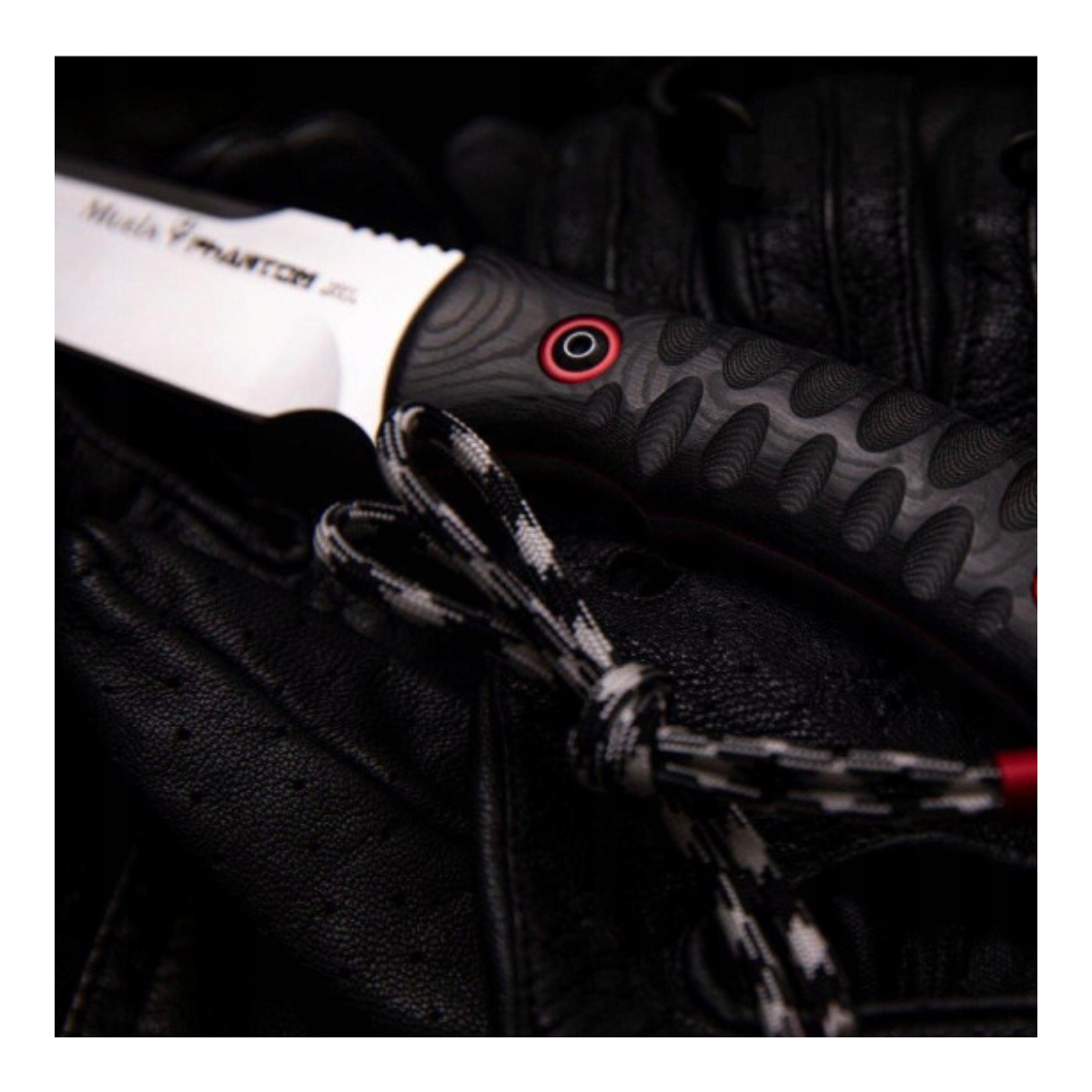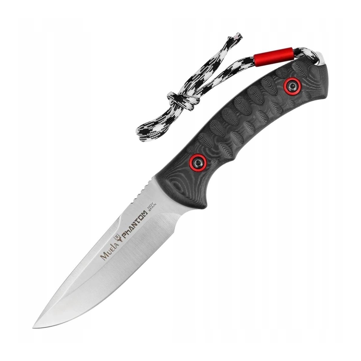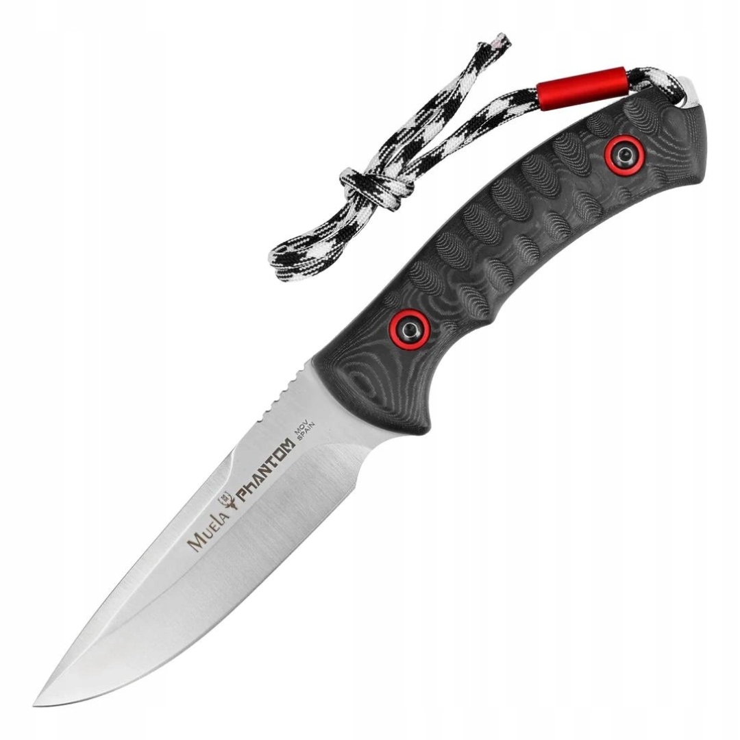 MUELA PHANTOM 12W X50CrMoV15 - to myśliwsko-taktyczny nóż o budowie full tang ze stałą klingą hiszpańskiej firmy Muela. Zaprojektowany z myślą o wytrzymałości, został poddany obróbce kriogenicznej CRYO-T, zwanej również wymrażaniem stali. Rękojeść z micarty została ozdobiona czerwonymi elementami.