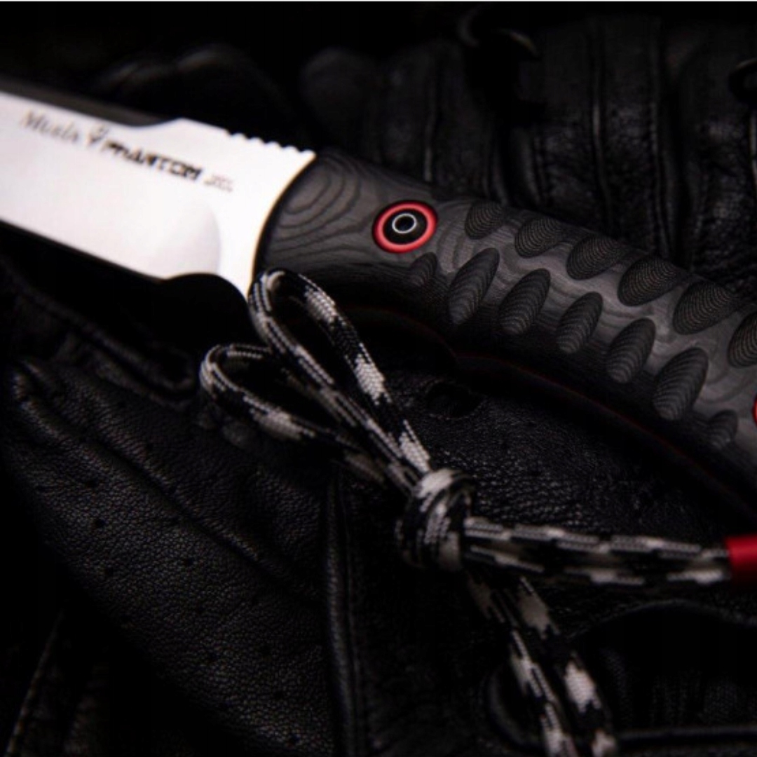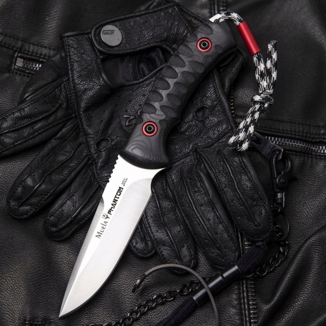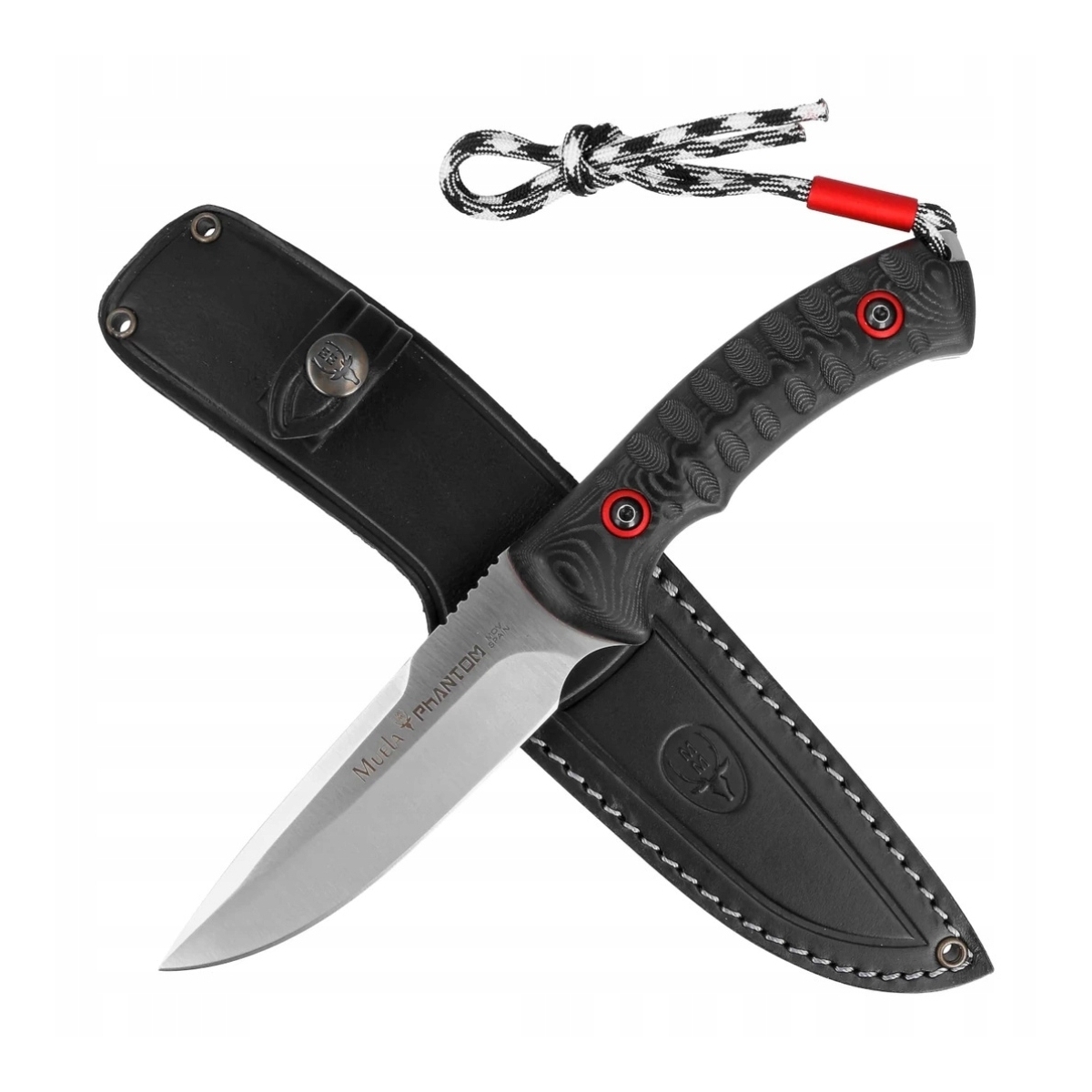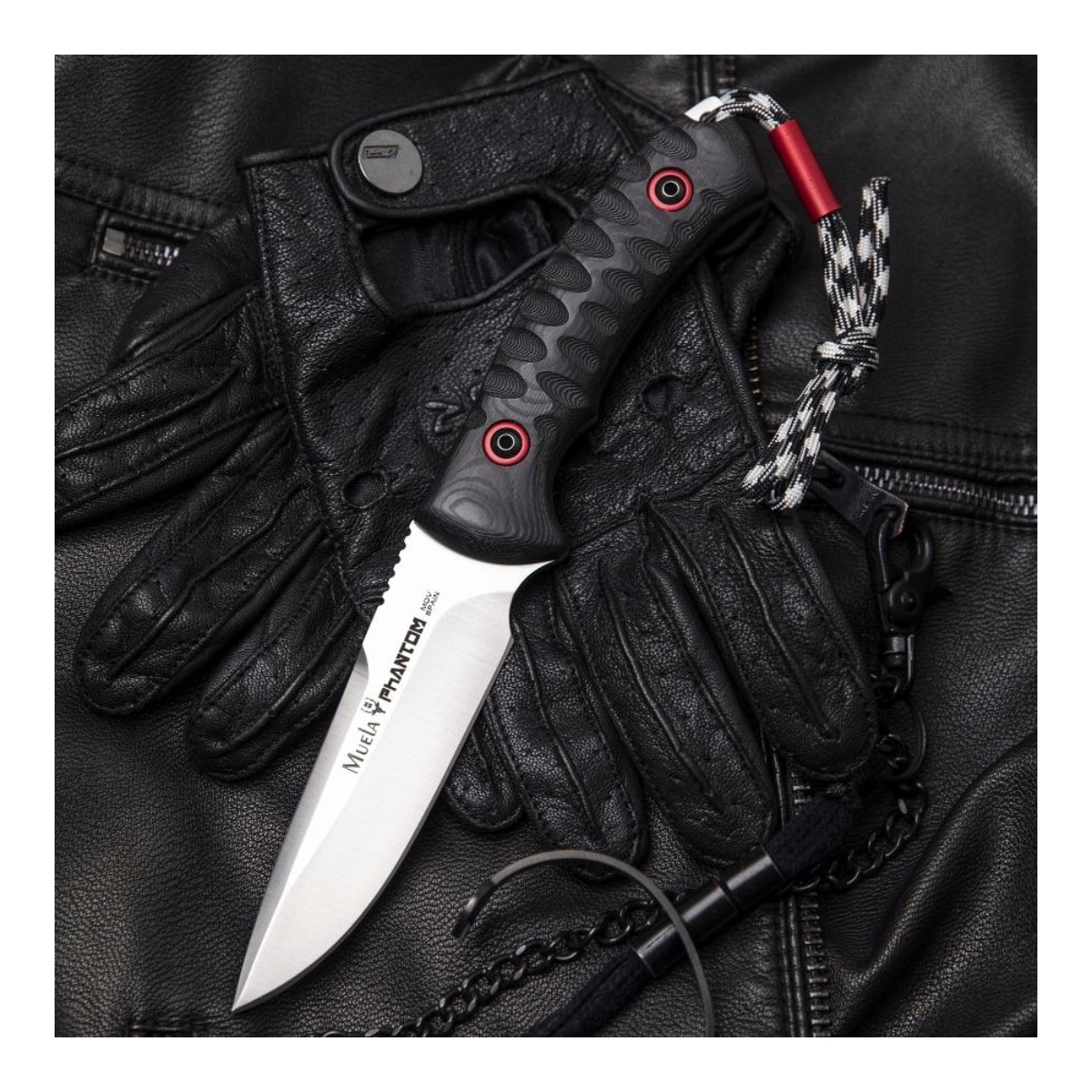 MUELA PHANTOM 12W X50CrMoV15 - to myśliwsko-taktyczny nóż o budowie full tang ze stałą klingą hiszpańskiej firmy Muela. Zaprojektowany z myślą o wytrzymałości, został poddany obróbce kriogenicznej CRYO-T, zwanej również wymrażaniem stali. Rękojeść z micarty została ozdobiona czerwonymi elementami.