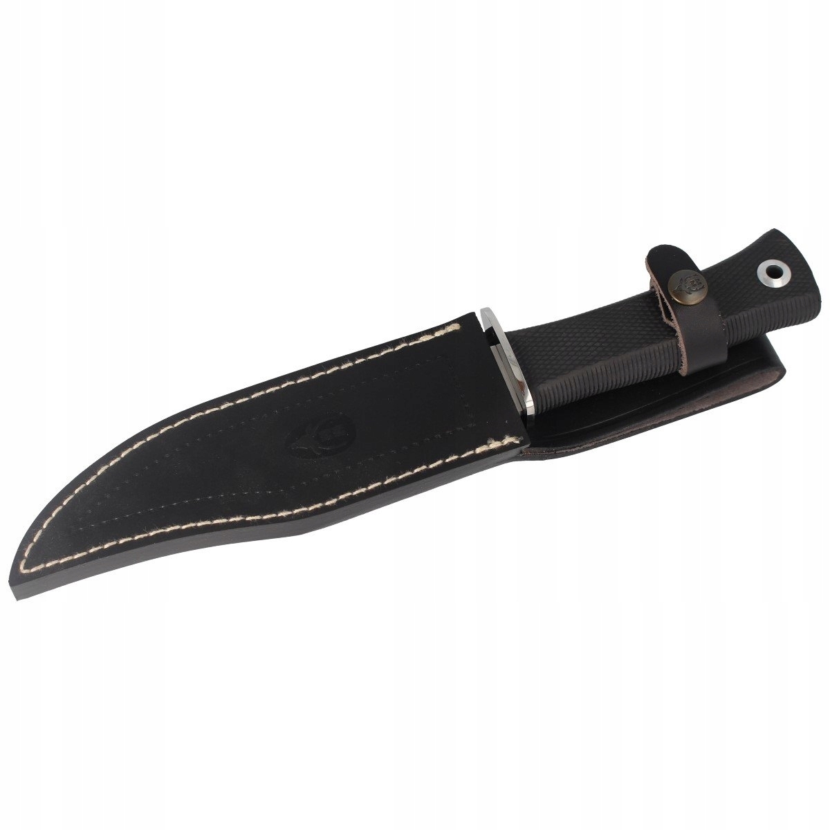 - Rękojeść noża dodatkowo została pokryta elastyczną moletowaną okładziną z elastomeru w kolorze czarnym.