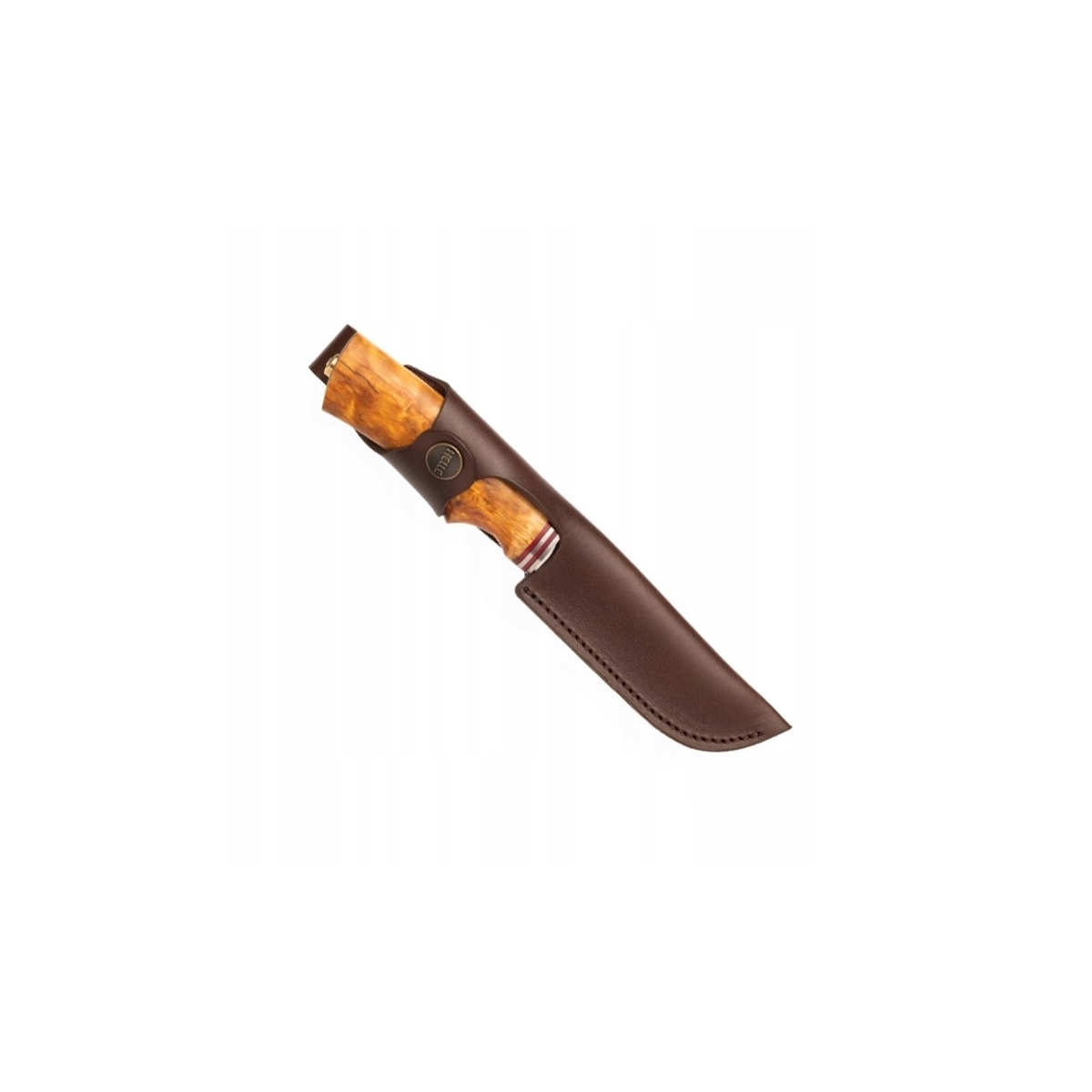 Pochwa z garbowanej skóry posiada zatrzask owijany wokół rękojeści noża. To zabezpiecza nóż przed zagubieniem, jednocześnie świetnie go eksponując.