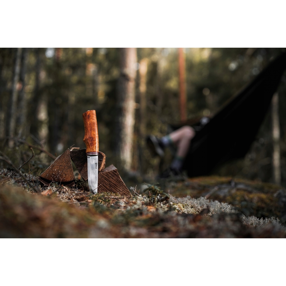 Potrójnie laminowane ostrze ze stali nierdzewnej ma lekki kształt punktu kropli i klasyczny szlif scandi. Było ono ręcznie ostrzone i polerowane, aby posiadało właściwą krawędź zaraz po wyjęciu z pudełka.