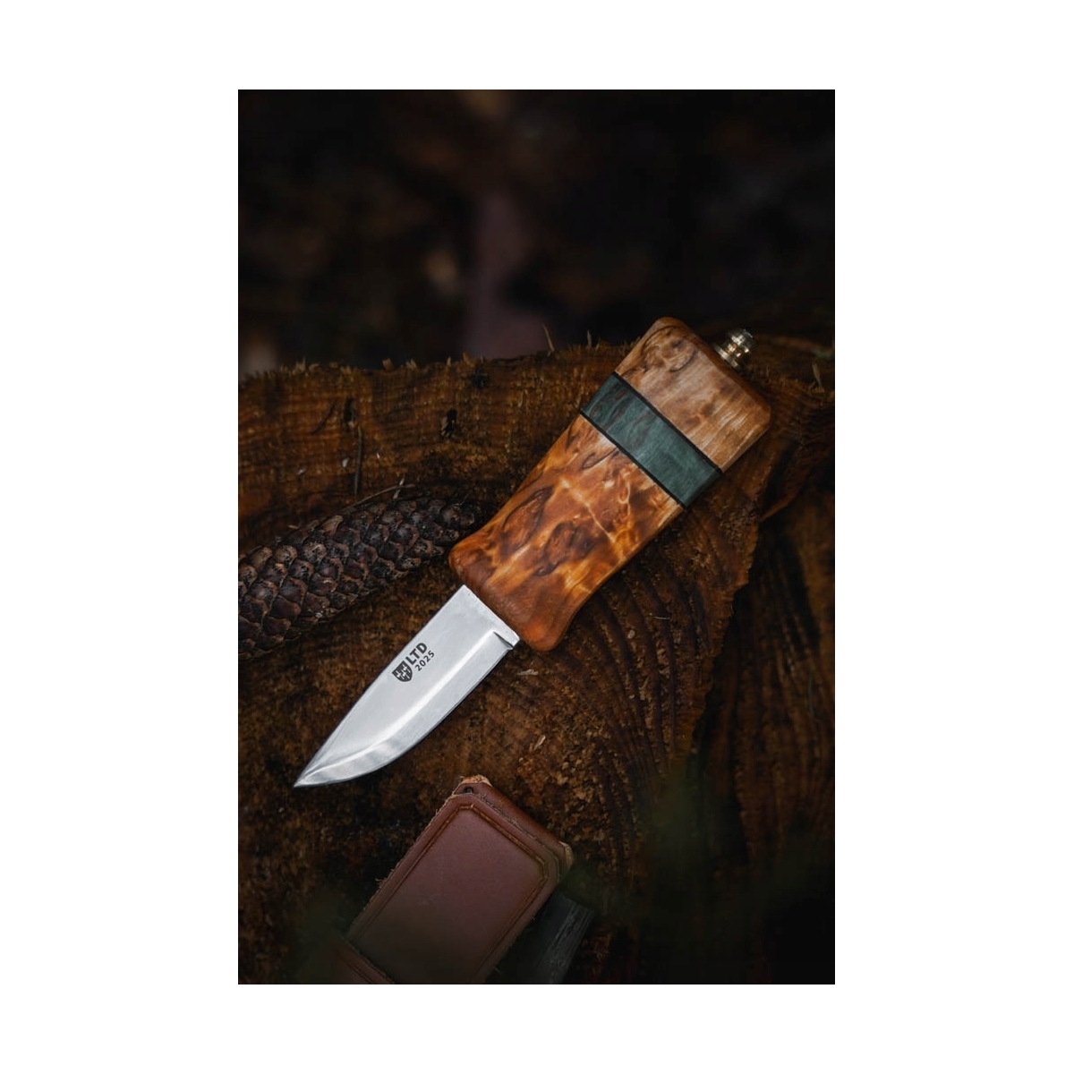 Materiał rękojeści: brzoza falista, zielona stabilizowana brzoza, skóra