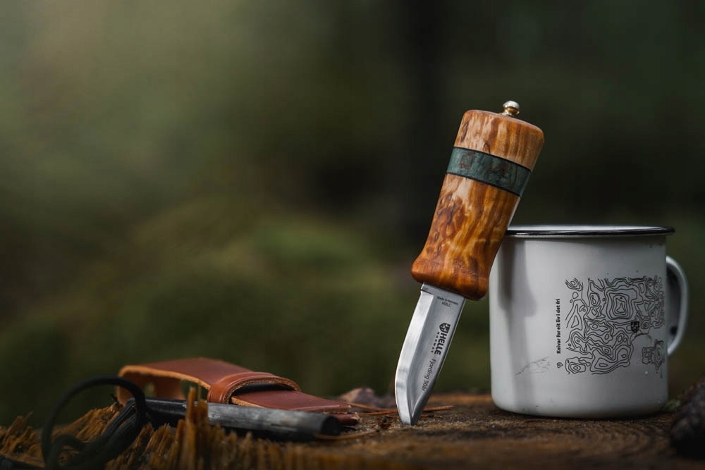 Limitowana edycja Helle Fjording 50 aar 2025 to hołd dla przełomowego projektu z 1975 roku, który zrewolucjonizował skandynawskie noże. Charakteryzuje się krótkim, grubym ostrzem idealnym do rzeźbienia oraz pięknie profilowaną rękojeścią z unikalnych materiałów: brzozy falistej, stabilizowanej brzozy zielonej i skóry. Wyjątkowy wygląd dopełnia elegancka, otaczająca pochewka z wysokogatunkowej skóry.