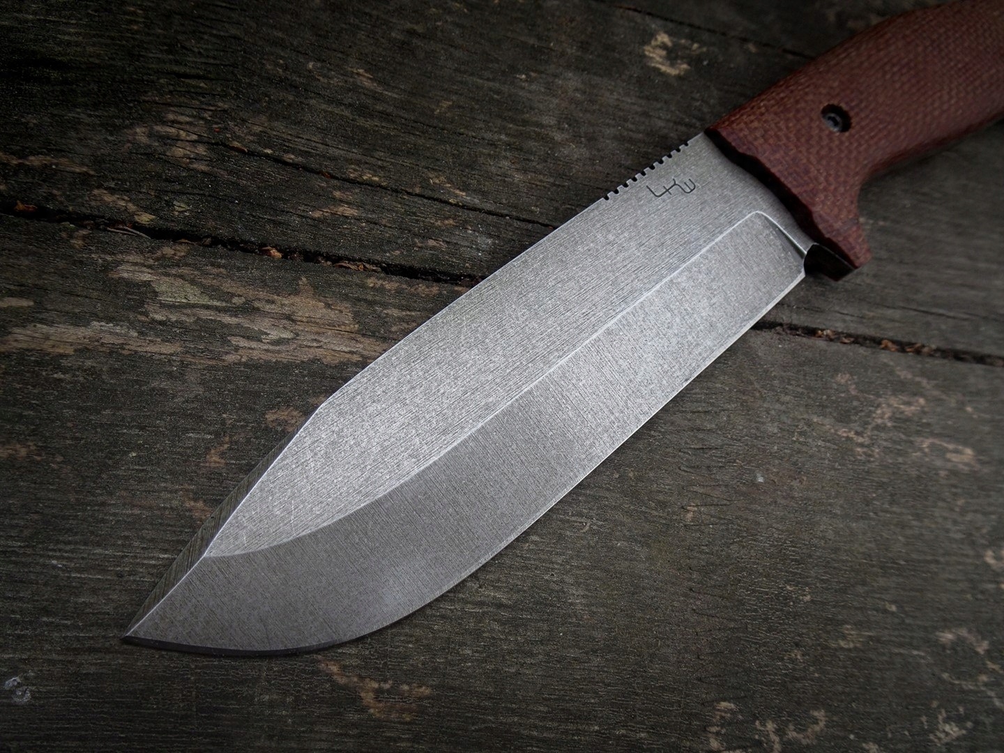 Głownia o profilu Drop-Point została wykonana z wysokowęglowej stali O2 Bohler K720 zahartowanej do twardości 59 HRC, która w połączeniu ze szlifem półpłaskim zapewnia bardzo dobre właściwości tnące i świetną odporność na korozję.