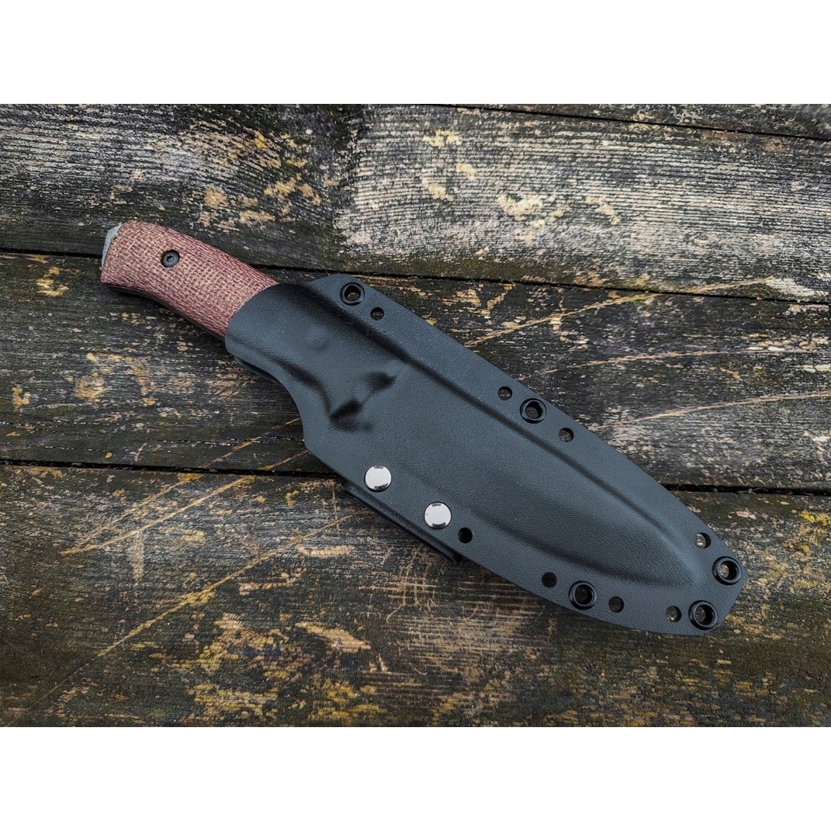 Rękojeść wykonano z wytrzymałego kompozytu Micarta, który charakteryzuje się wysoką wytrzymałością mechaniczną, odpornością na ścieranie, warunki atmosferyczne i chemikalia.