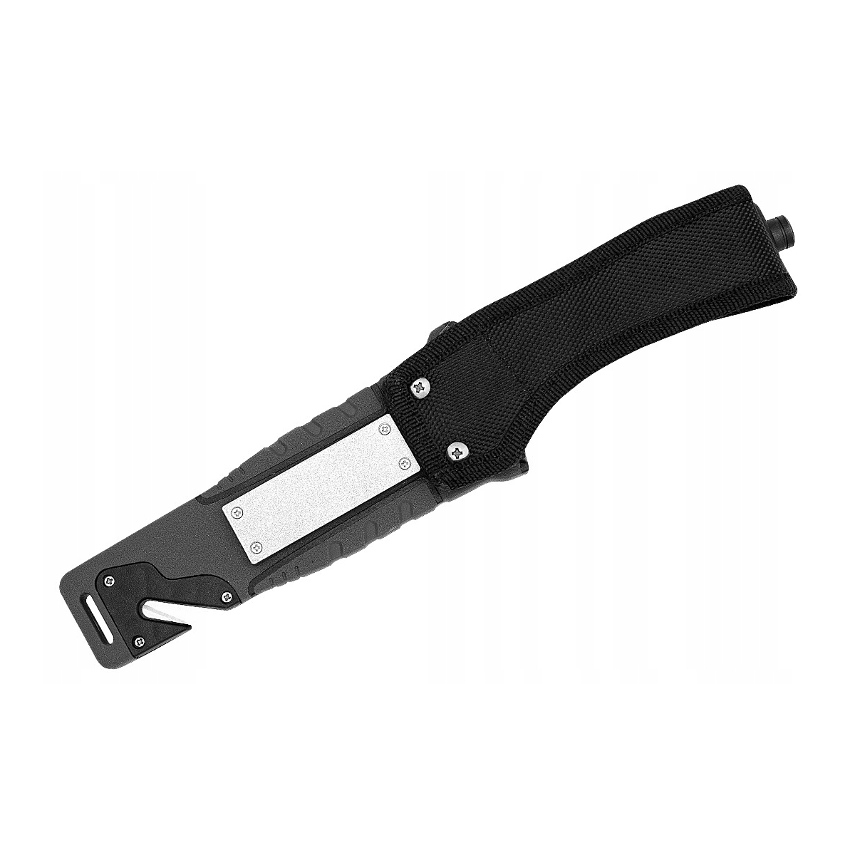 - Przecinak do Pasów: Zintegrowany z pokrowcem, idealny do błyskawicznego przecięcia pasów bezpieczeństwa lub linek.