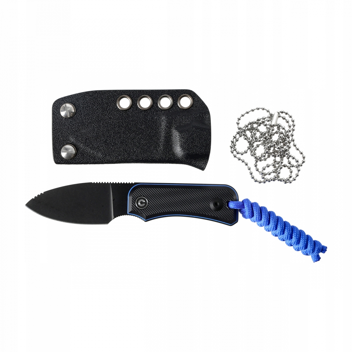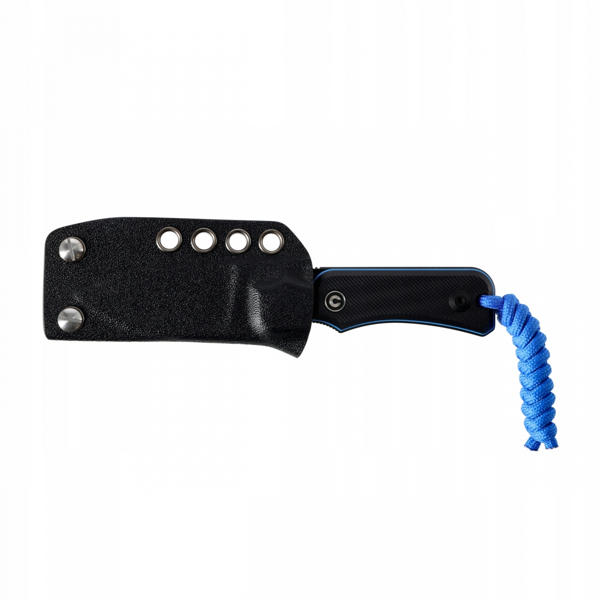 CIVIVI Baby Banter C23045-1 to lekki i praktyczny nóż stały zaprojektowany z myślą o codziennym użytkowaniu (EDC), outdoorowych aktywnościach oraz zadaniach polowych. Model ten łączy wysokiej jakości stal ostrza Nitro-V, ergonomiczny chwyt z G10 w kolorze czarno - niebiesiem oraz konstrukcję full tang, co zapewnia znakomitą trwałość, niezawodność i komfort pracy. Dzięki kompaktowym wymiarom nóż łatwo przenosi się w pochwie i wykorzystuje do różnorodnych zadań cięcia, krojenia czy obróbki materiałów. W zestawie znajduje się kydexowa pochwa z łańcuszkiem, umożliwiająca noszenie noża na szyi lub zamocowanie go na pasie.