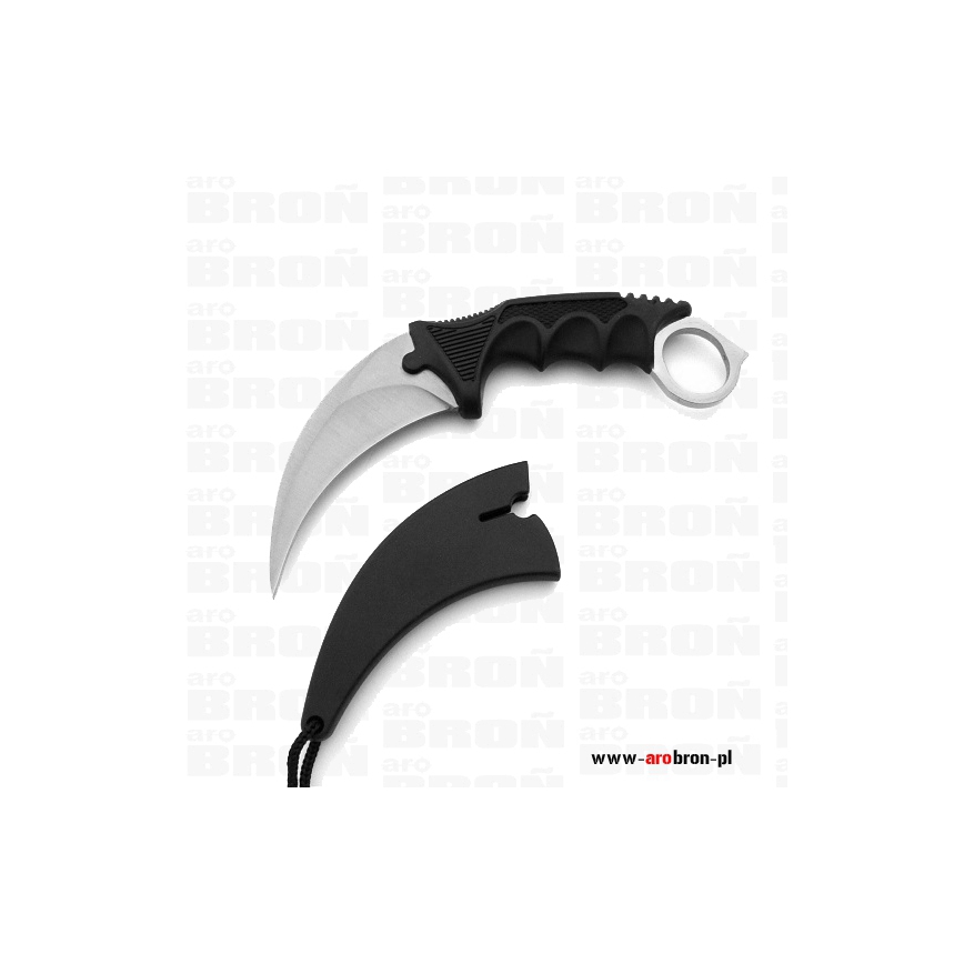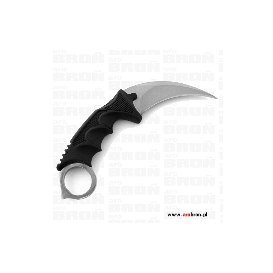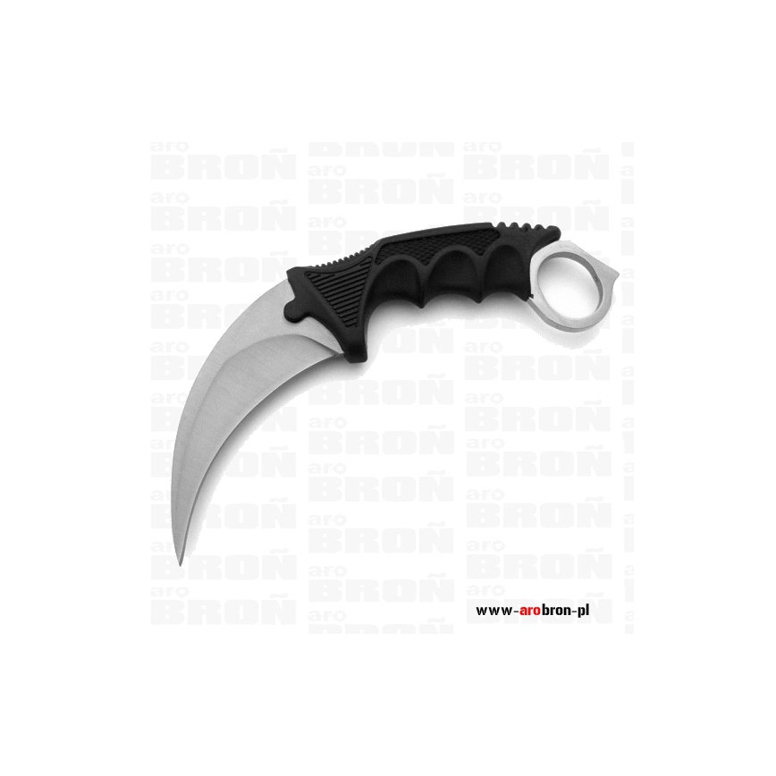 Nóż stały karambit N-062B Silver to model znany z gier CS:GO i stosowany w azjatyckiej sztuce walki pencak silat. Charakteryzuje się zakrzywioną głownią przypominającą pazur drapieżnika. Ostrze wykonane zostało ze stali nierdzewnej 440, która zapewnia długie utrzymywanie ostrości i łatwość naostrzenia. Rękojeść z wyprofilowaną rampą pod kciuk posiada teksturowane okładziny wykonane z polimeru. Na końcu rękojeści znajduje się otwór na palec zapewniający szybką zmianę chwytu i zapobiegający wypadnięciu noża z ręki. W komplecie znajduje się kabura nylonowa z linką.