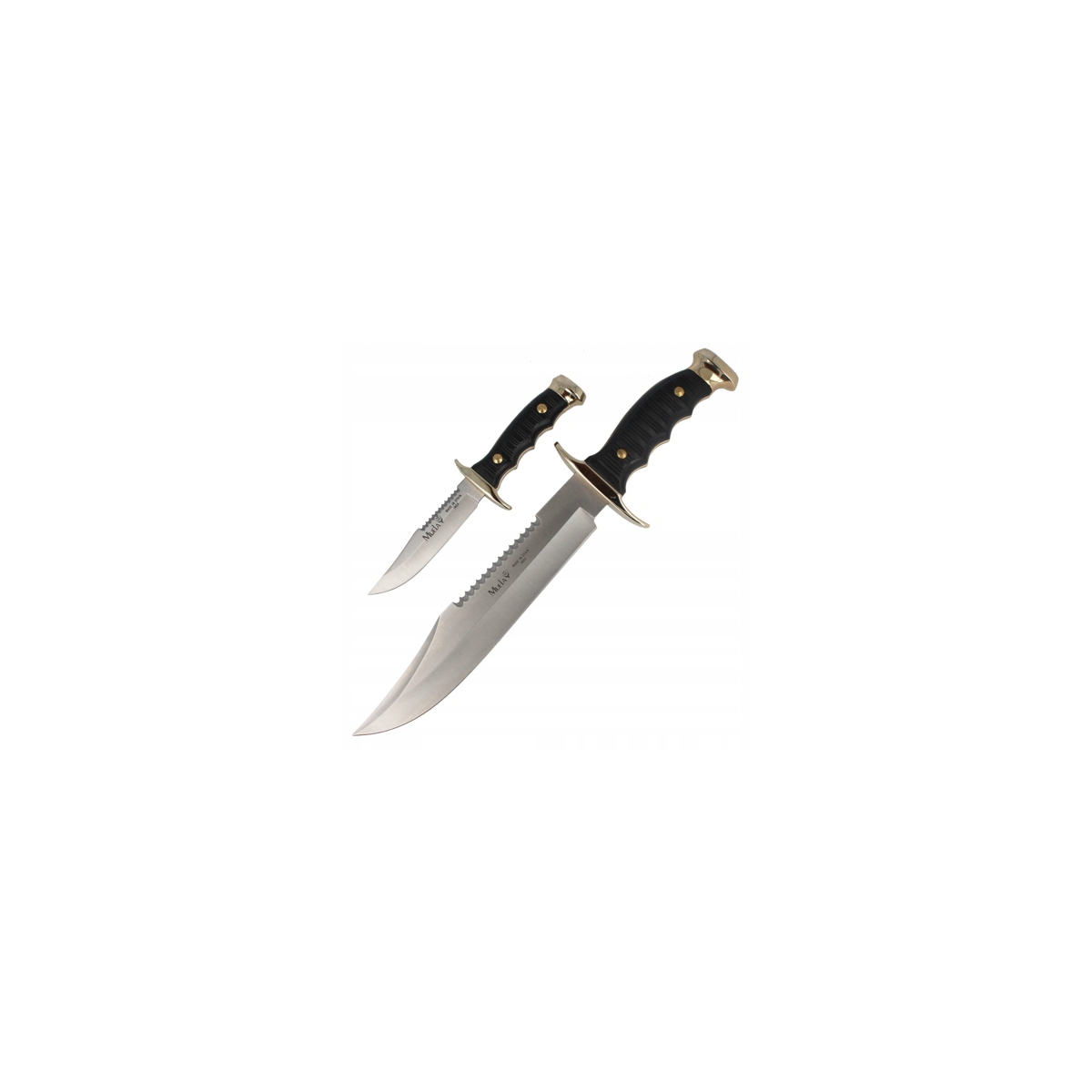 Noże posiadają antypoślizgową, wyprofilowaną rękojeść z wytrzymałego tworzywa sztucznego w kolorze czarnym ze złotymi zdobieniami. Na górnej krawędzi klingi w obu nożach znajduje się piłka.