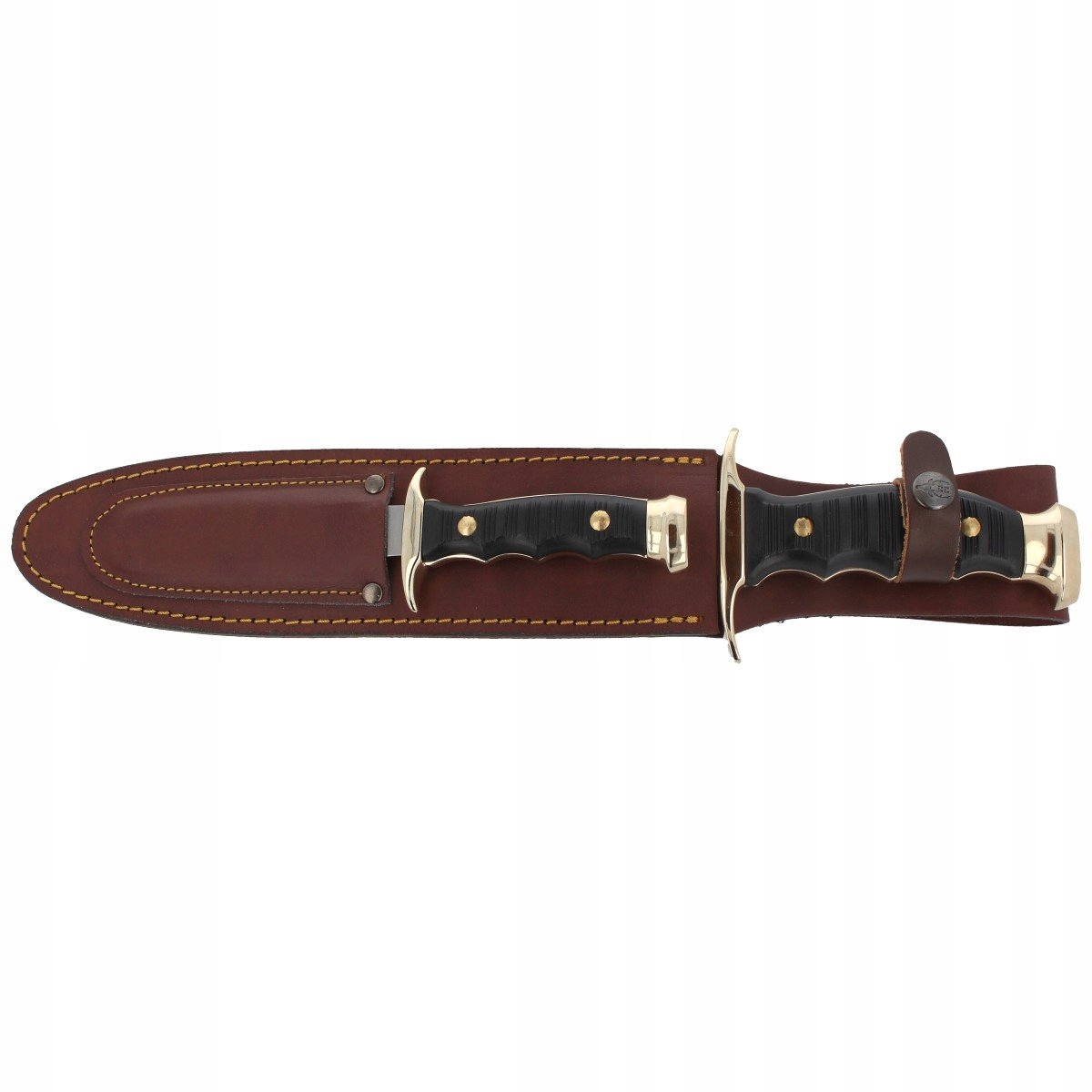 W komplecie skórzane etui z uchwytem na pasek mieszczące obydwa noże.