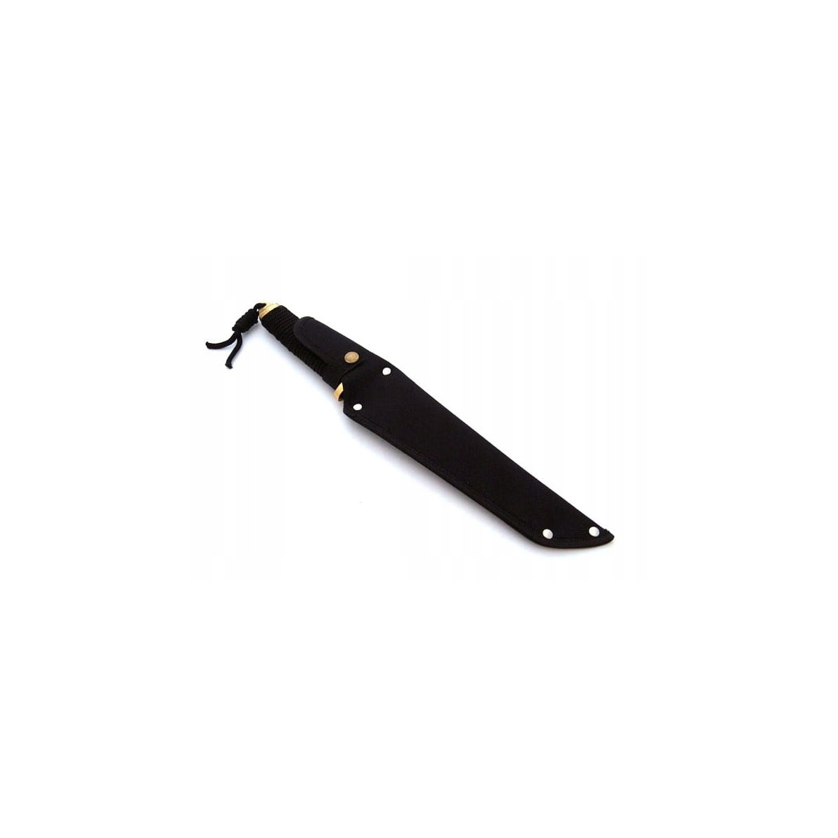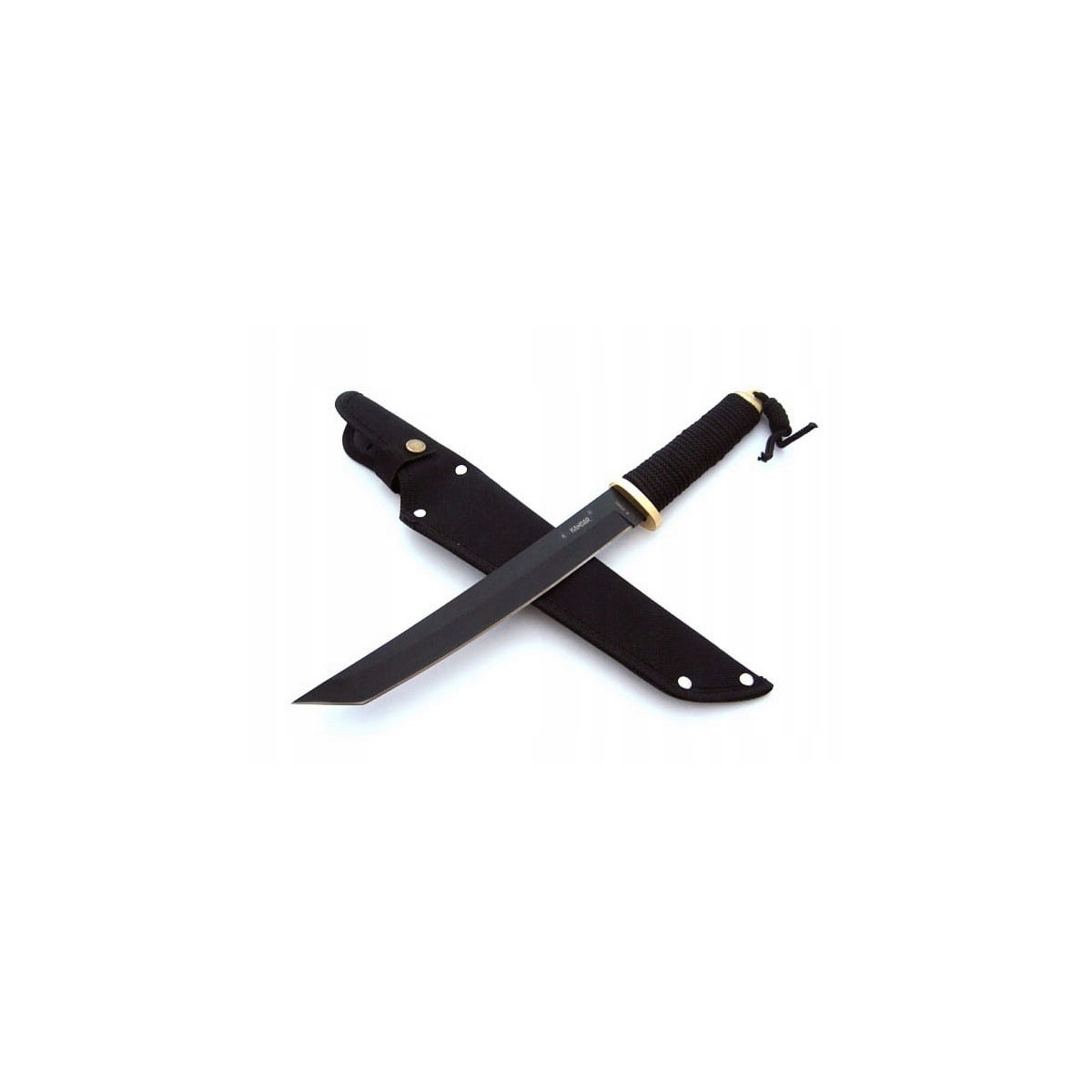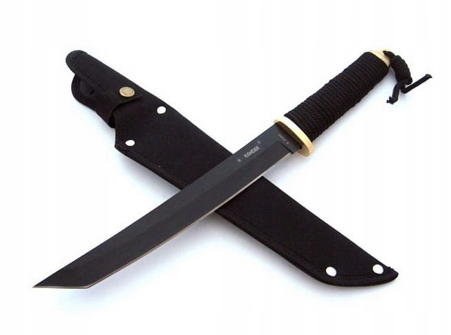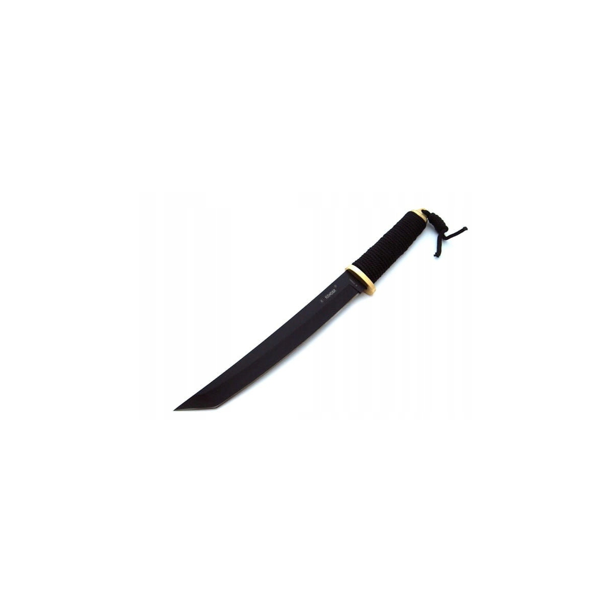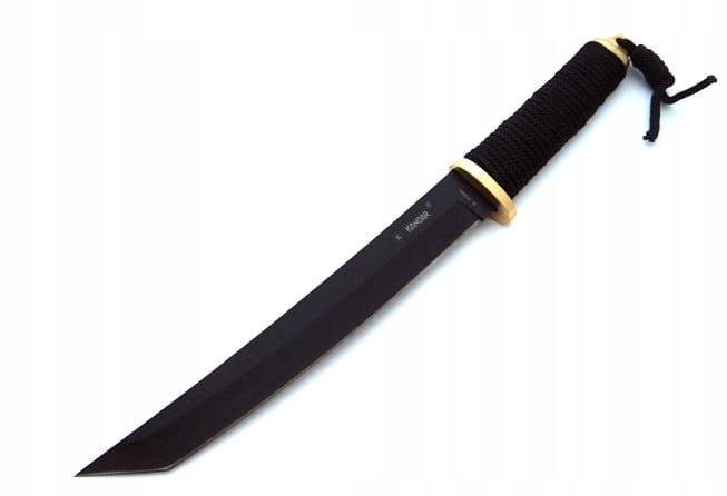 Nóż Kandar N-629B - elegancki nóż z głownią typu tanto firmy Kandar. Ostrze o długości 210 mm zostało wykonano z solidnej, grubej stali nierdzewnej 440. Rękojeść opleciona jest grubym sznurkiem.