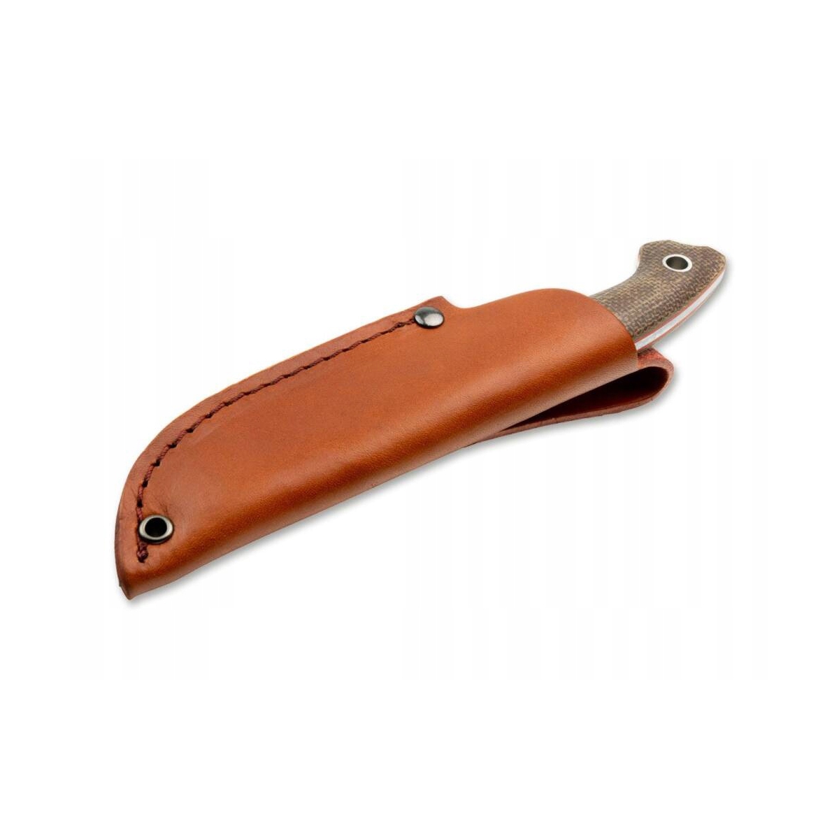 Nóż BOKER Plus Nessmi Pro Vox - nóż ma konstrukcję full-tang z D2, która doskonale nadaje się do użytku na zewnątrz, polowań i codziennych zadań związanych z cięciem. Warstwy czerwonego włókna pod uchwytem łusek brązowej Micarty i delikatne satynowe wykończenie ostrza w kształcie liścia wzbudzają zainteresowanie wizualne i nadają Nessmi Pro niezwykły wygląd. W zestawie wygodna skórzana pochwa. Charakterystyczne nity drążone pełnią podwójną funkcję jako otwór na smycz.