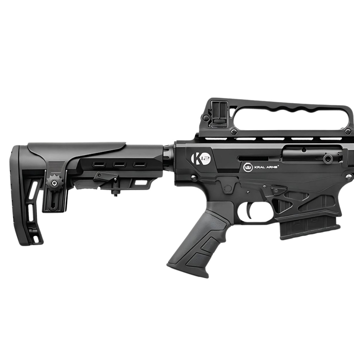 Model K12 firmy Kral Arms to przykład połączenia stylistyki karabinków AR-15 z funkcjonalnością broni śrutowej. Wysoka kompatybilność z akcesoriami, możliwość regulacji wielu elementów, a także zastosowanie niezawodnego systemu gazowego sprawiają, że K12 Black to uniwersalne narzędzie dla każdego użytkownika – od strzelców sportowych po myśliwych. Marka Kral Arms znana jest z solidnych, dostępnych cenowo strzelb i karabinków – model K12 to jeden z jej najpopularniejszych produktów.