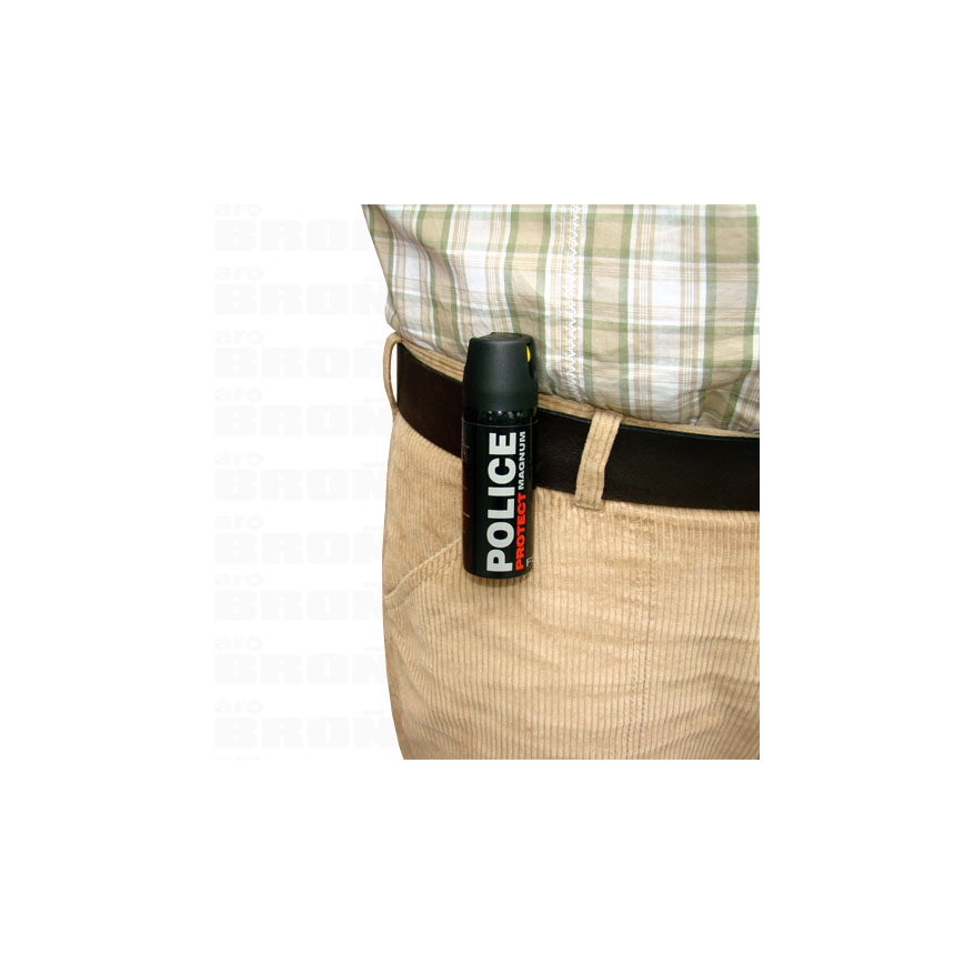 Najsilniejszy gaz dostępny dla cywili. Police Protect wersja Magnum posiada 11% stężenie olejku pieprzowego. Gaz obezwładniający w postaci chmury- Fog. Substancja drażniąca pozwala skutecznie obronić się przed ludźmi, jak również zwierzętami. Skuteczny także na osoby pod wpływem alkoholu i środków odurzających. Bezpośrednim efektem działania gazu jest paraliż układu oddechowego, łzawienie oczu, nosa, pieczenie skóry oraz duszności uniemożliwiające dalszy atak napastnika. Występuje dezorientacja napastnika na okres 30 min. Gaz wystrzeliwany jest w postaci chmury. Zaletą gazów jest łatwość trafienia napastnika, substancja jest wystrzelona w postaci dużej chmury. Zasięg chmury gazu do 3m. Oddanie strzału powinno być minimum z 1 m w stronę napastnika. Prosta budowa czyni gaz wytrzymałym w użyciu a montowany seryjnie klips do paska pozwala na wygodne przenoszenie i szybkie w użycie w razie potrzeby. Nie powoduje trwałych obrażeń.