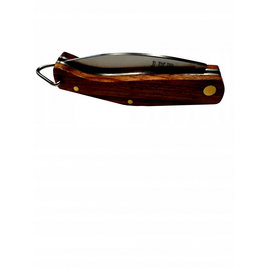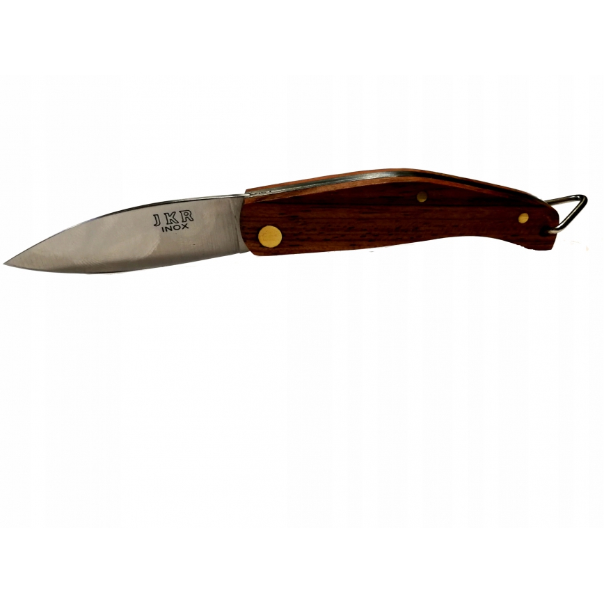 Nóż stały myśliwski JOKER CR65 to kompaktowy składany nóż w formie breloku hiszpańskiej firmy Joker. Ostrze wykonano ze stali nierdzewnej INOX. Rękojeść posiada drewniane okładziny. Na końcu rękojeści zamontowane jest kółko, które umożliwia doczepienie noża do kluczy.