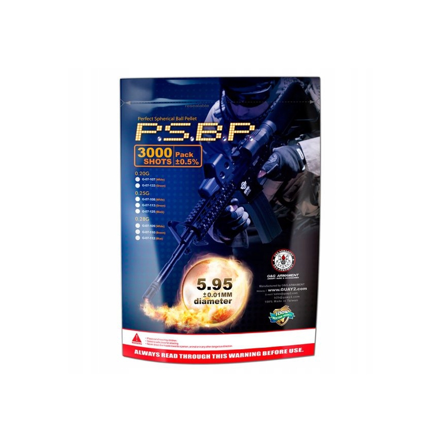 Kulki ASG G&G 0,25g 3000 szt - to wysokiej jakości, precyzyjne kulki ASG firmy G&G ARMAMENT. Przeznaczone są do każdego rodzaju luf, także precyzyjnych.