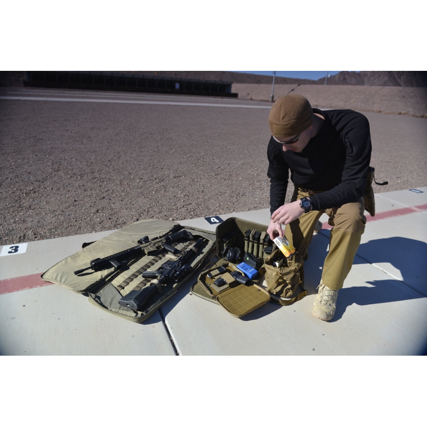 Zestaw dwóch worków przeznaczonych do przenoszenia i organizacji amunicji na strzelnicy.