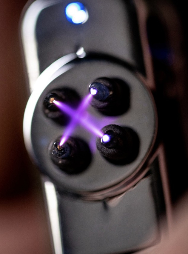 - Źródło ognia stanowią dwa łuki elektryczne wyzwalane krzyżowo przez cztery elektrody,