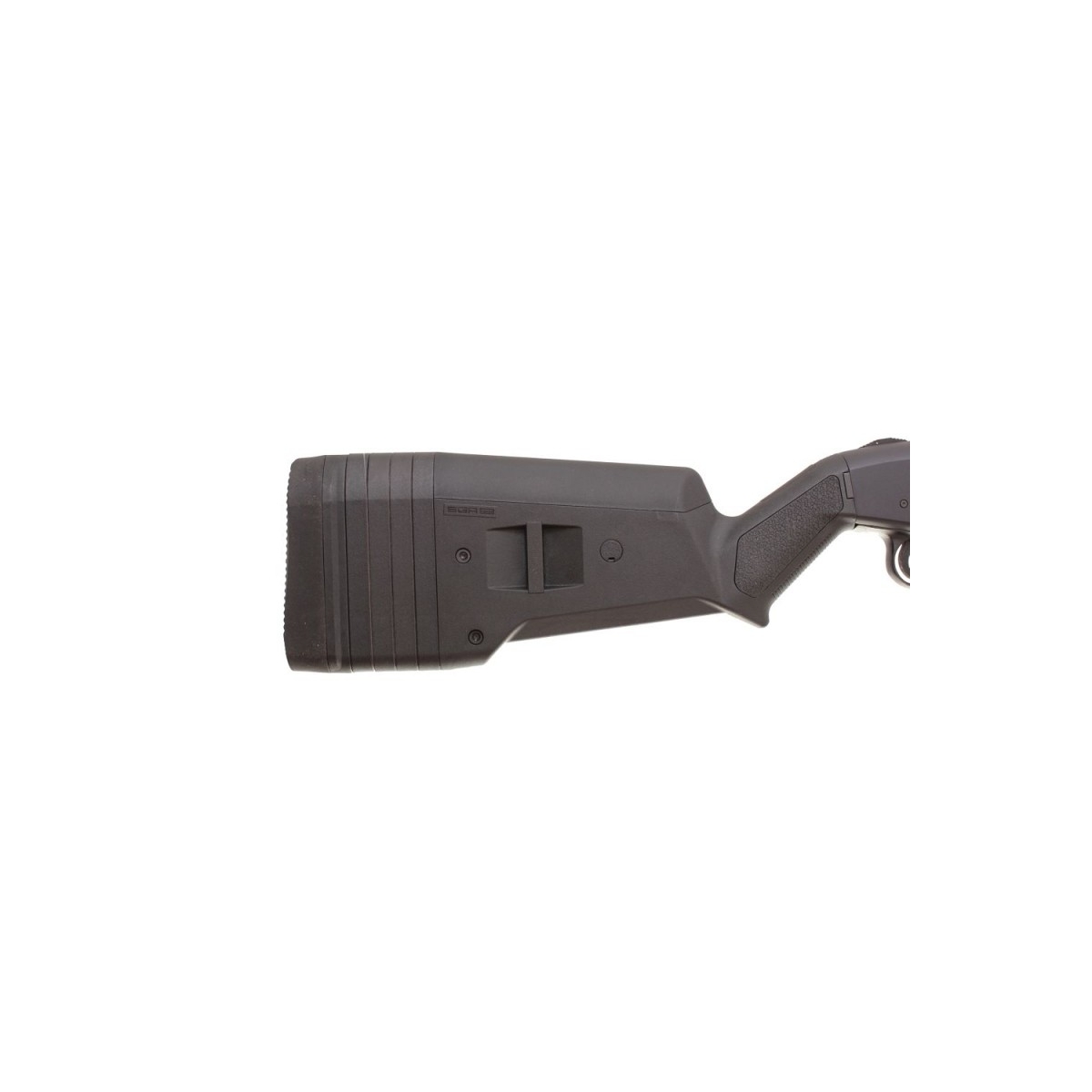 Model ten charakteryzuje się również ergonomicznymi modyfikacjami, które poprawiają komfort użytkowania i efektywność. Kolba Magpul SGA, regulowana za pomocą wkładek dystansowych, pozwala na dopasowanie długości strzelby do potrzeb użytkownika, co zwiększa komfort strzelania i ułatwia kontrolę nad bronią. Uchwyt Magpul MOE, specjalnie zaprojektowany pod kątem stabilności, zapewnia pewny chwyt, co ma kluczowe znaczenie podczas szybkiego i precyzyjnego operowania bronią. Magpul dodał także specjalne mocowania do pasków taktycznych, które pozwalają na wygodne noszenie broni w różnych pozycjach i szybkie jej przenoszenie.