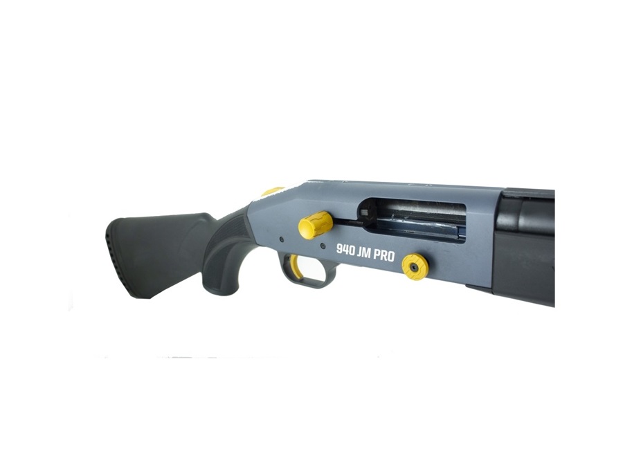 Strzelba jest dostosowana do strzelania amunicją typu magnum w kalibrze 12/76, co zapewnia mocny odrzut i wysoką skuteczność na krótkim i średnim dystansie. Magazynek o pojemności 9+1 pozwala na długą serię strzałów bez konieczności ładowania, co jest szczególnie przydatne podczas dynamicznych konkurencji strzeleckich. Mossberg 940 JM Pro posiada także szerokie okno ładowania, które ułatwia szybkie uzupełnienie amunicji – jest to istotna zaleta dla zawodników, którym zależy na szybkim doładowywaniu.