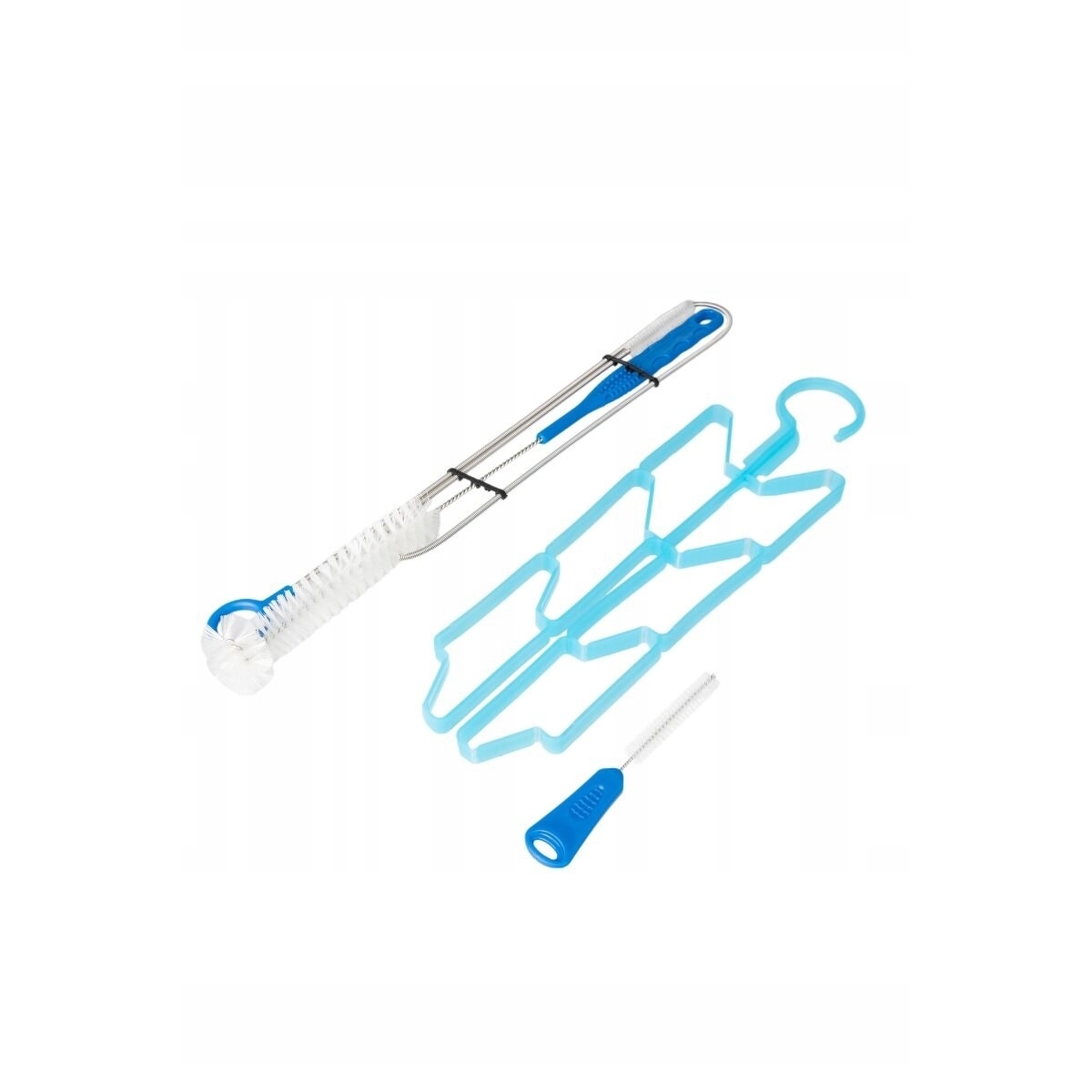 Zestaw zawiera wszystkie elementy, które będą potrzebne - wieszak, wycior i dwie szczotki w różnych rozmiarach. Dzięki temu można w pełni zadbać o bukłak i akcesoria do niego, by przygotować się do kolejnej wyprawy bez ryzyka rewolucji żołądkowych. Dwie szczotki w pełni wyczyszczą większe i mniejsze elementy, a wieszak umożliwi szybkie wysuszenie systemu.