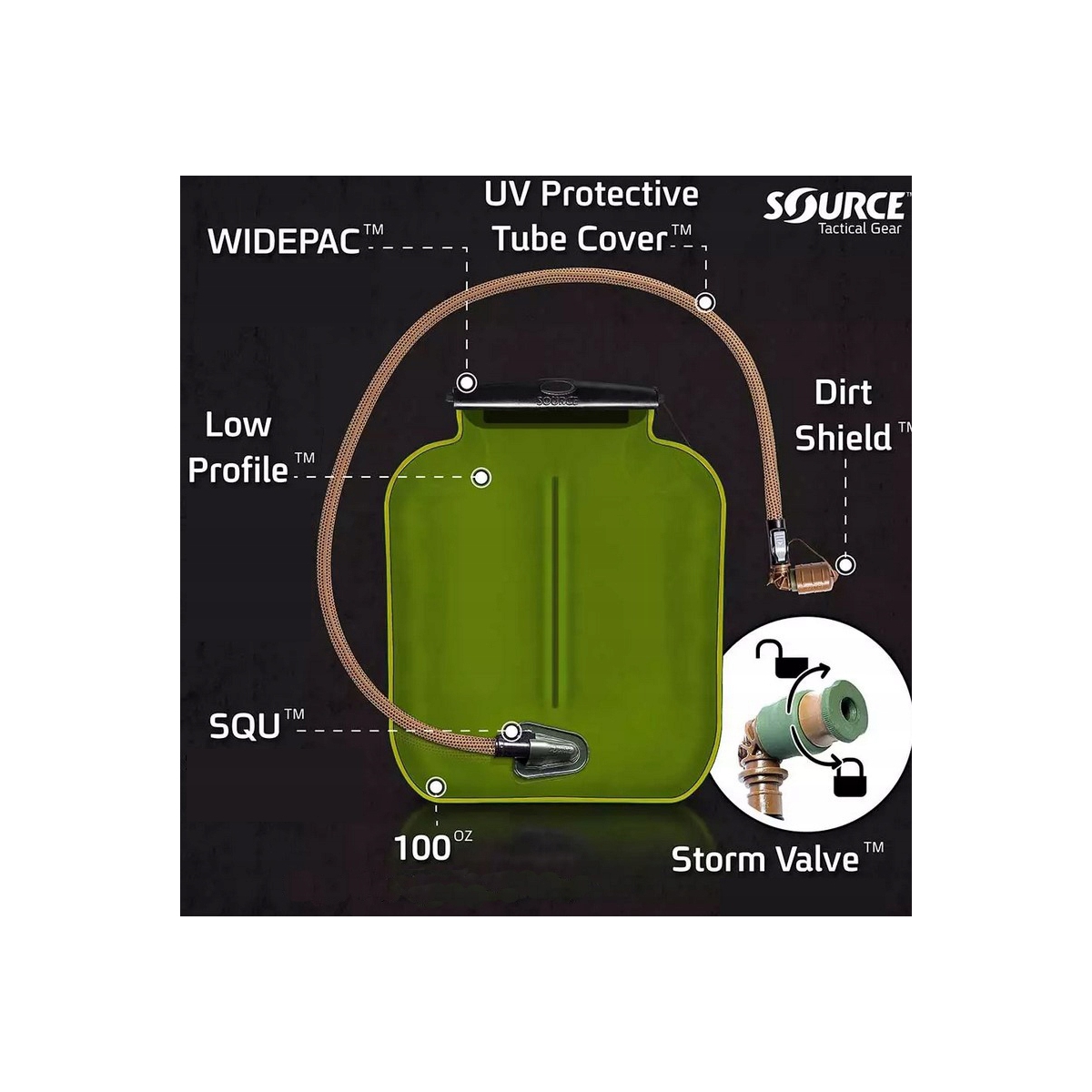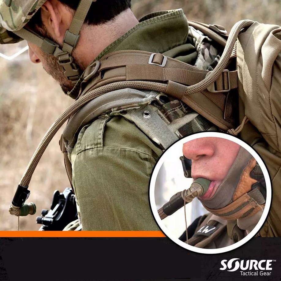Source WLPS - bukłak taktyczny WLPS jest przeznaczony do nisko profilowych nośników hydracyjnych, takich jak ładownice i plecaki MOLLE, a ponadto kompatybilne z kamizelką (taką jak np.: Razor Low Profile Hyration Pouch i Rider Low Profile Hydration Pack - kamizelki nie znajdują się w zestawie).