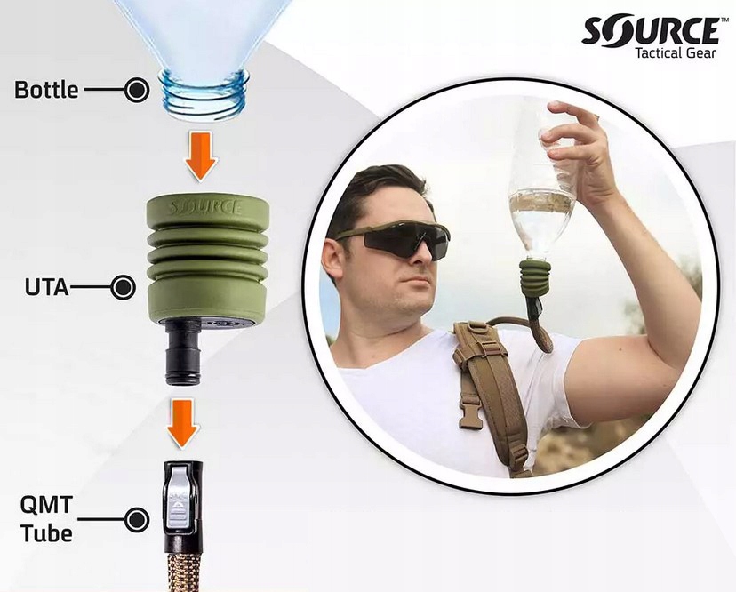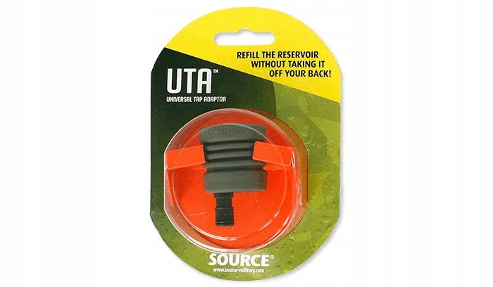 Source UTA - opatentowany adapter do szybkiego napełniania worków hydracyjnych Source. To przełomowe rozwiązanie do uzupełniania systemu nawadniania „w ruchu” – bez otwierania plecaka, a nawet zdejmowania go z pleców. (Patent USA nr 8,430,134 B2).