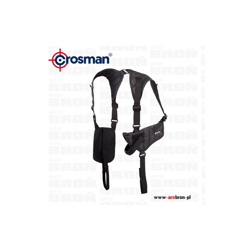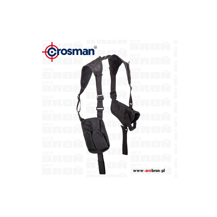 Kabura SAH03 - kabura renomowanej firmy Crosman. Kabura wykonana z brezentu modułowy zestaw kabury na pistolet oraz pokrowca na 2 magazynki zawieszony na szelkach. Kabura posiada pasek zabezpieczający przed wypadnięciem, który jest regulowanej długości. Istnieje możliwość przełożenia zestawu na symetryczny dla osób leworęcznych.