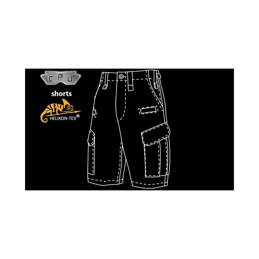 Szorty CPU® to krótsza wersja spodni z tej samej serii. Ich krój odpowiada anatomii człowieka nie ograniczając zakresu ruchów użytkownika. Zestaw pojemnych kieszeni pozwala przenosić istotny sprzęt. Szerokie kieszenie udowe z elastycznym ściągaczem, są dostosowane do używania ich jako torby zrzutowej na puste magazynki. Nieduże kieszenie na przodzie służą do przechowywania latarki, składanego noża lub zapasowego magazynka. Seria CPU® należy do jednej z najczęściej i najchętniej kupowanych linii z oferty firmy Helikon.