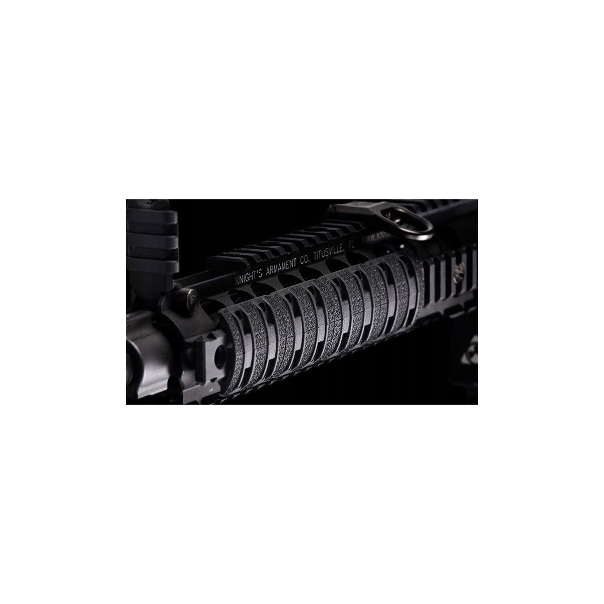 Osłona Szyny MAGPUL RIS XTM MAG510 Czarny - Zestaw czterech dwuczęściowych osłon szyn RIS / Picatinny wykonanych z wytrzymałego, teksturowanego polimeru. Montowane są bezpośrednio na łożach i czółenkach. Wyraźne, agresywne teksturowanie gwarantuje pewny chwyt. Charakterystyczny kształt poprawia ułożenie dłoni, tak by wygodniej korzystać z zamontowanej latarki taktycznej bądź wskaźnika laserowego. Pomaga w zorganizowaniu okablowania zamontowanego oporządzenia. Opatentowany przez Magpul system wpinania pozwala na szybki montaż niewymagający stosowania narzędzi. W razie potrzeby, do demontażu można użyć dwóch pocisków karabinowych.