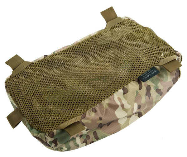 Siatkowane dno pozwala na łatwe odprowadzanie wilgoci po zamoknięciu, natomiast osiem pętli z taśmy umożliwia przytroczenie pokrowca do plecaka