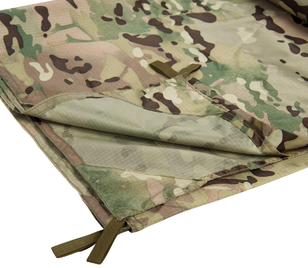 Uniwersalna płachta biwakowa do budowy schronień w terenie. Tarp wykonany został z lekkiego, powlekanego materiału poliestrowego. Dziewiętnaście punktów mocowania pozwala na wiele ustawień i konfiguracji w zależności od ukształtowania terenu i warunków. Wysoką wytrzymałość zapewniają wzmocnione punkty mocowania,
