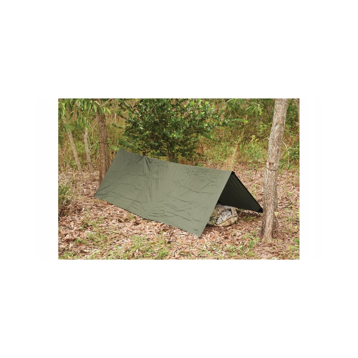 - Wodoodporna płachta biwakowa, która pozwala na łatwe zbudowanie schronienia przed deszczem, wiatrem lub słońcem
