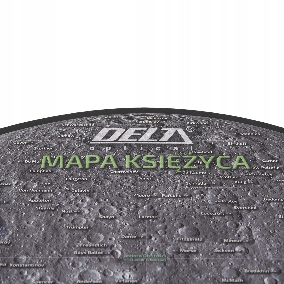 Obrotowa Mapa księżyca - profesjonalna mapa stworzona przez polską firmę Delta Optical. Estetycznie wykonana i precyzyjnie zaprojektowana pod okiem specjalistów Delta Optical mapa Księżyca, która pozwoli poznać topografię naszego jedynego naturalnego satelity.