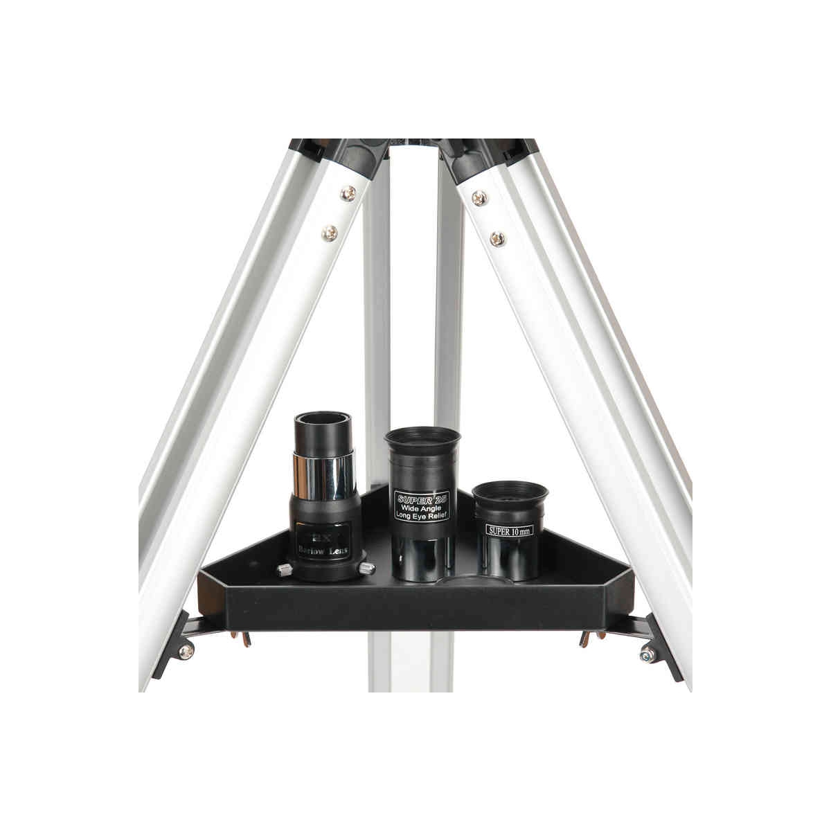 Teleskop wyposażony jest wyciąg okularowy, umożliwiający stosowanie okularów 1,25”. Do zestawu dołączono dwa okulary o ogniskowej 25 i 10mm, dające powiększenia 36x i 90x. Dodatkowo dołączona jest soczewka Barlowa 2x, dzięki której można uzyskać dodatkowo powiększenia 72x i aż 180x.