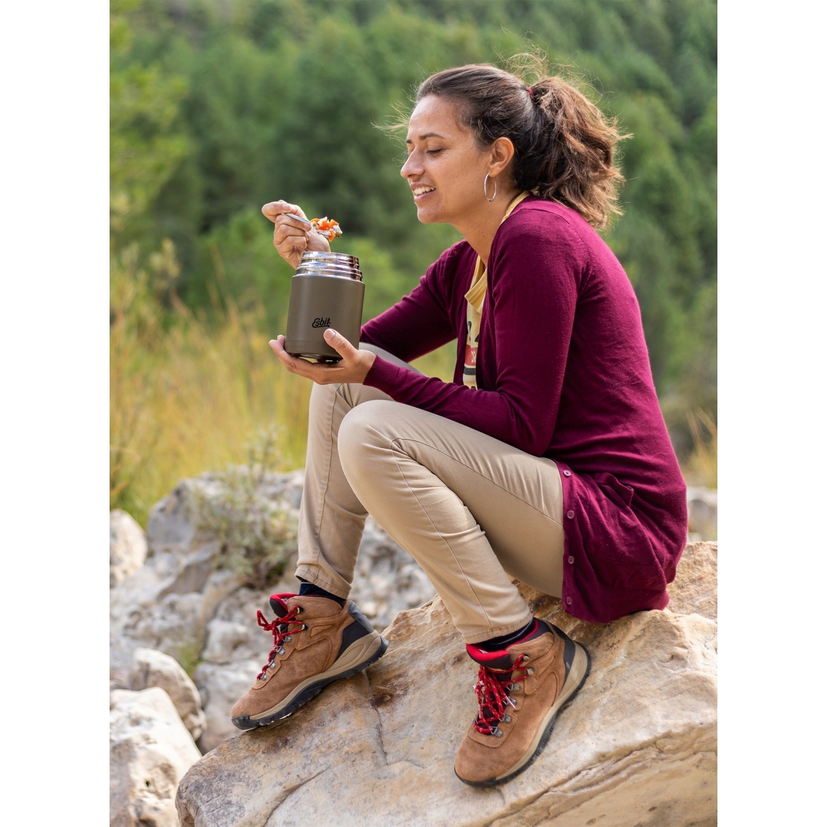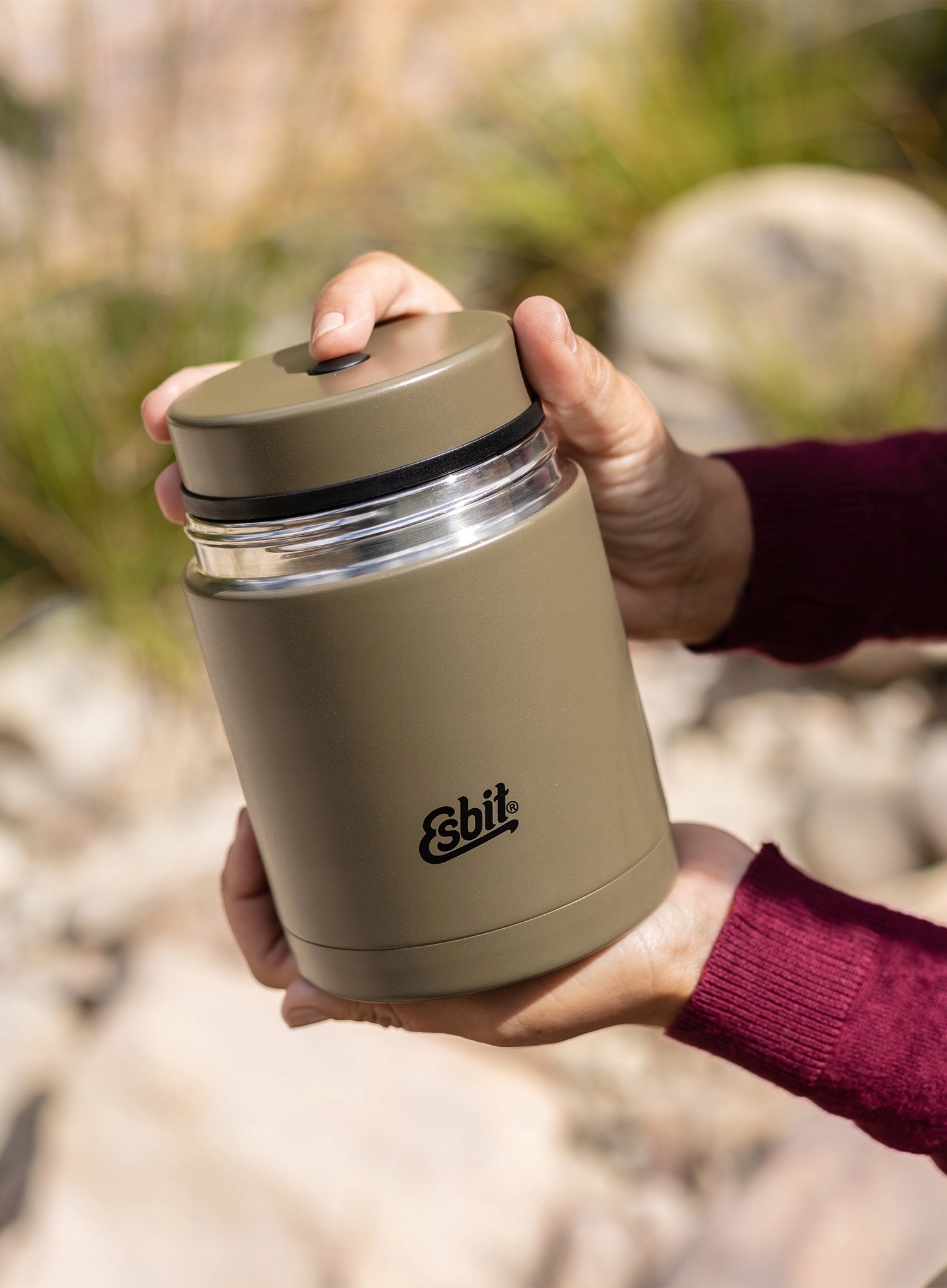 Termos obiadowy Esbit Food Jug 1L - to turystyczne naczynie, którego właściwości możesz wykorzystać również na co dzień, w roli pojemnika na posiłek w pracy lub szkole. Charakteryzuje się on estetycznym wykończeniem i podwyższoną trwałością, która znacząco przekłada się na żywotność produktu.Materiałem wykorzystanym do produkcji termosu Esbit Food Jug 1L jest wysokiej jakości stal nierdzewna 18/8. Z jej składu całkowicie wyeliminowano związki BPA oraz szkodliwe ftalany, a przenoszone napoje zachowują swój świeży aromat przez wiele godzin.