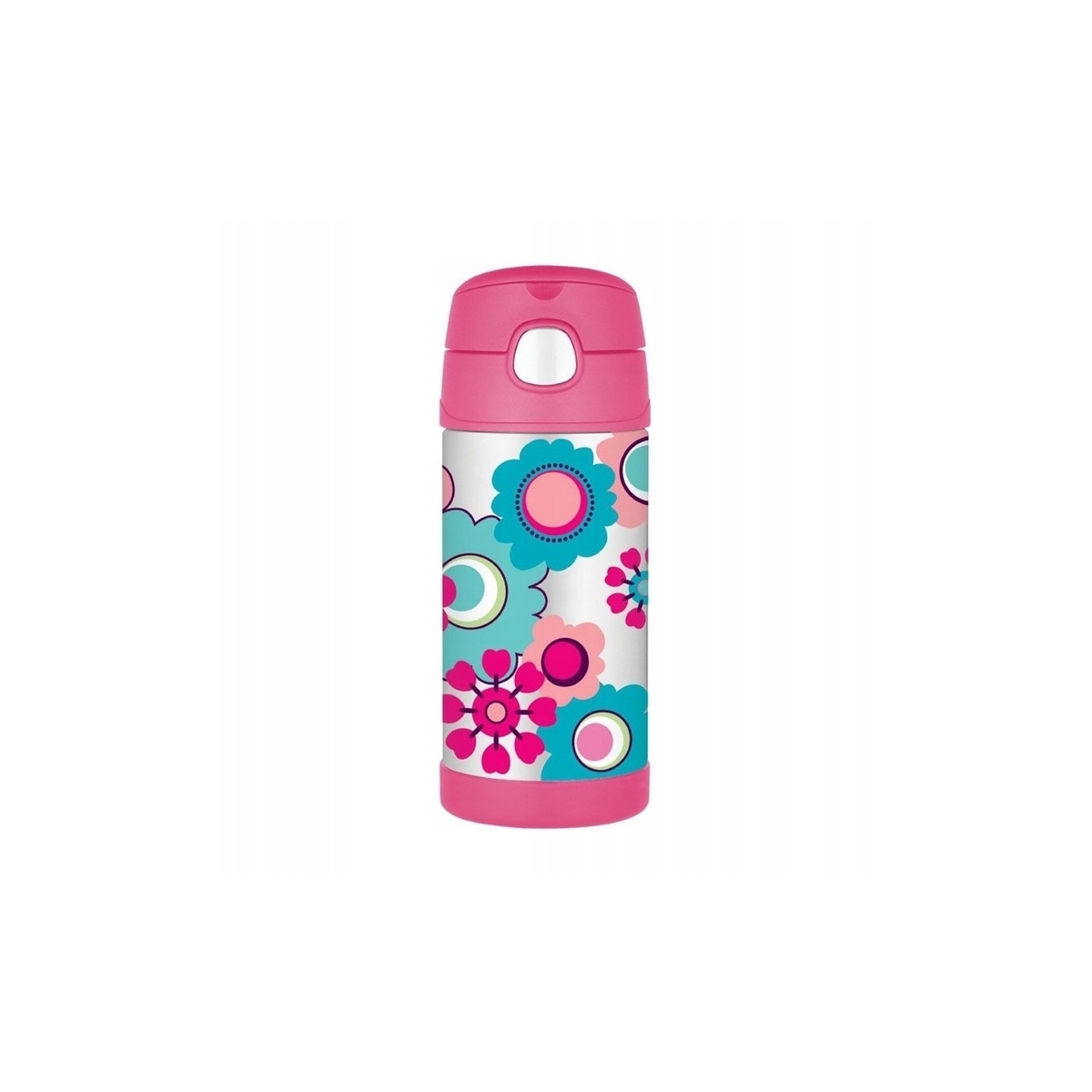 Termos dziecięcy na picie ze słomką Thermos FUNTAINER 335ml - został wyprodukowany przez wiodącego producenta Thermos, który jako pierwszy w 1904 roku użył technologii próżniowej w produktach komercyjnych. Zastosowany system próżniowy Thermax pozwala na utrzymanie zimnego napoju do 12 godzin (nie jest przystosowany do ciepłych napoi). Lekkie i kompaktowe wykonanie, łatwo mieści się do plecaka lub wózka dziecięcego. Wyprodukowany z wysokiej klasy stali nierdzewnej, która jest odporna na uszkodzenia oraz rdzę.