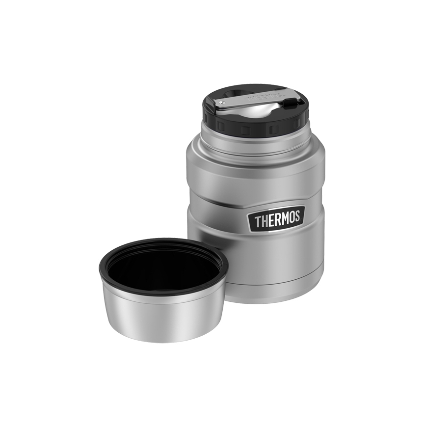 Termos obiadowy Thermos KING 470ml - został wyprodukowany przez wiodącego producenta Thermos, który jako pierwszy w 1904 roku użył technologii próżniowej w produktach komercyjnych. Zastosowany system próżniowy Thermax pozwala na utrzymanie ciepła posiłku do 9 godzin lub zimnego do 14 godzin. Pozwala to na zabranie ze sobą ciepłych dań obiadowych jak i zimnych typu lody czy sałatki.